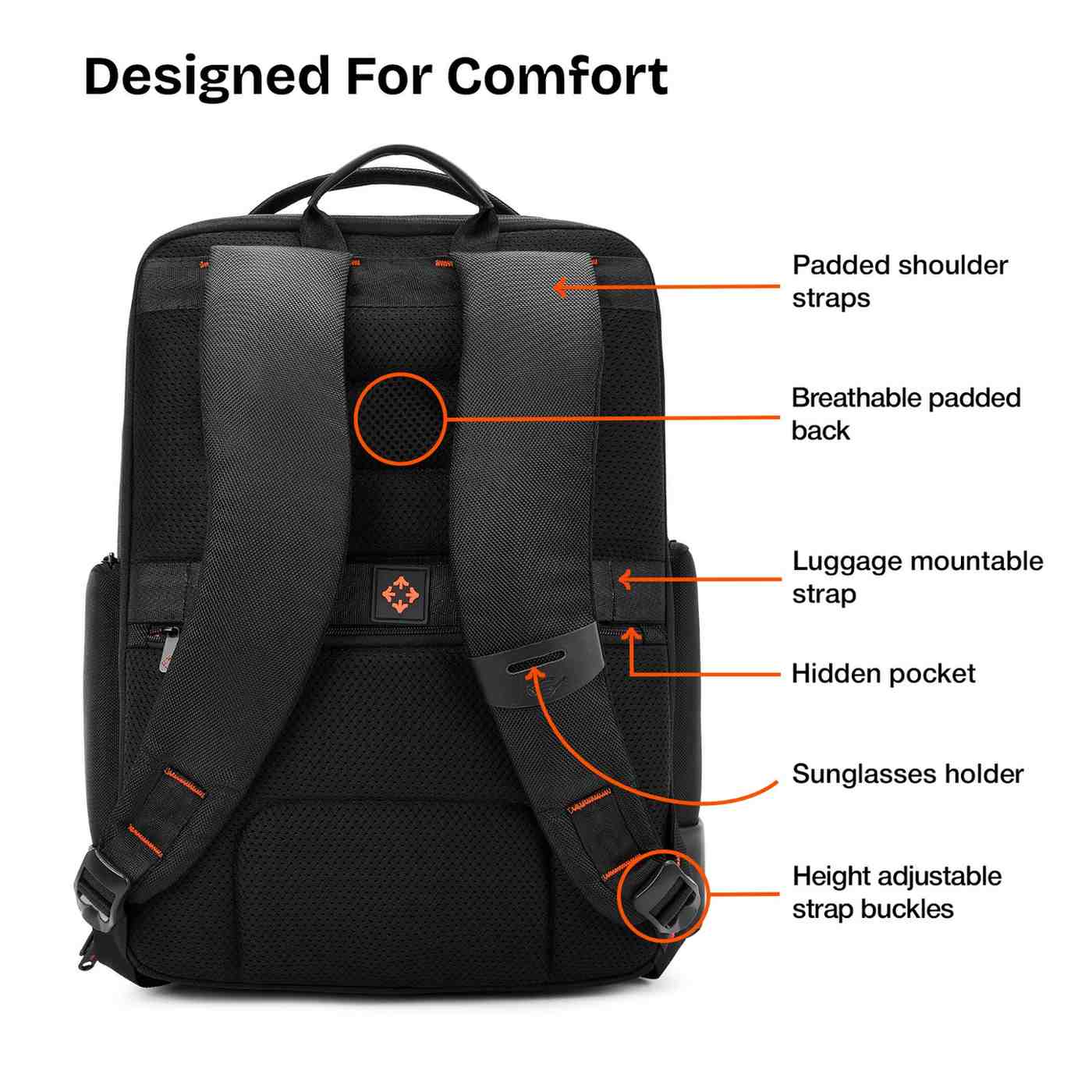 Ergonomic Precision & Everyday Versatility: Experience unmatched comfort with a design built for all-day wear. The adjustable, padded shoulder straps minimize strain, while the breathable back panel ensures airflow to keep you cool during long commutes. To make travel seamless, the luggage mountable strap lets you attach the bag to a trolley suitcase, offering hands-free convenience during airport transits or business trips.