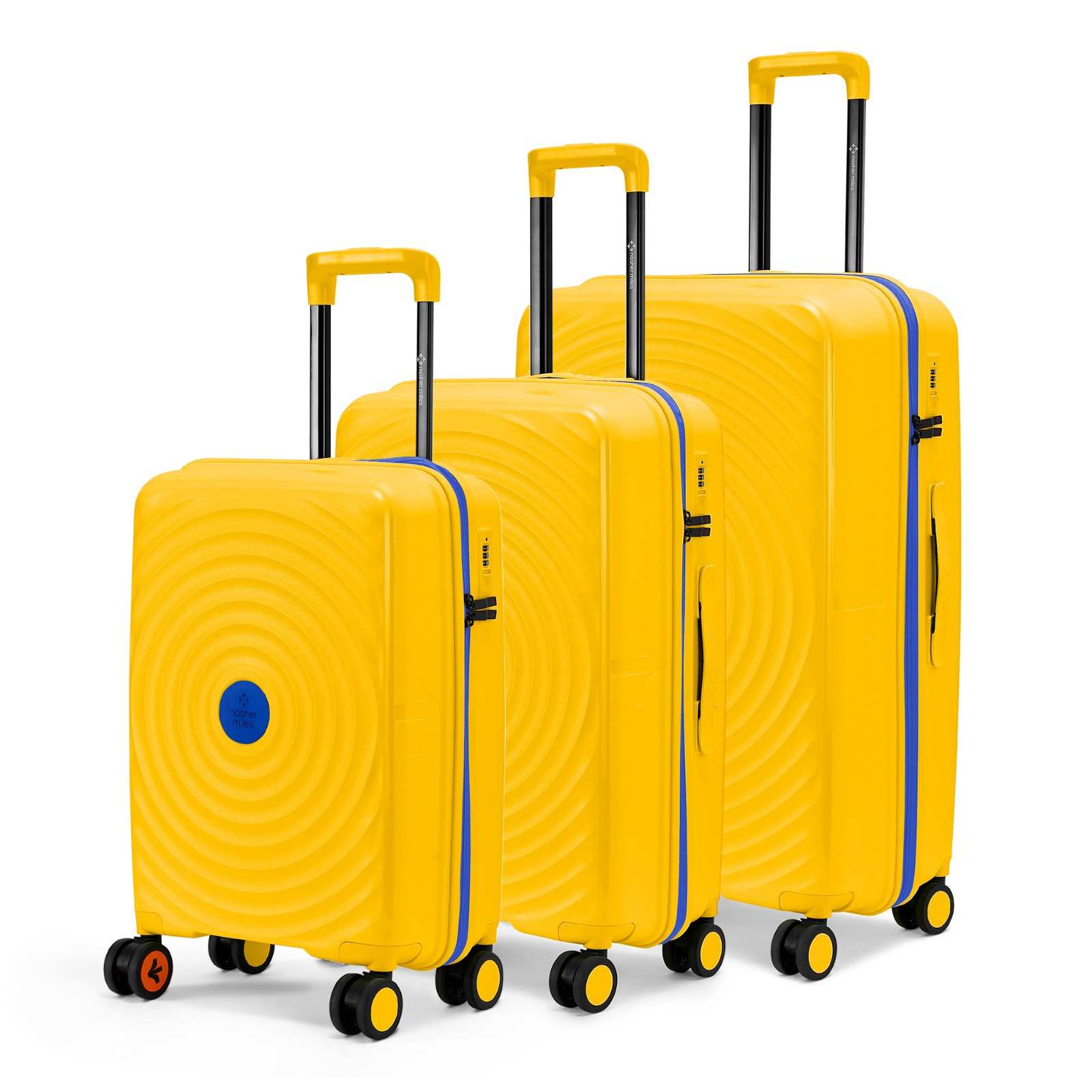Extremely lightweight: Hard side 3 piece luggage set which is just 10.5 kgs, includes the following sizes: Small: 55 cms (2.7 kgs), Medium: 65 cms (3.5 kgs) and Large: 75 cms (4.3 kgs).