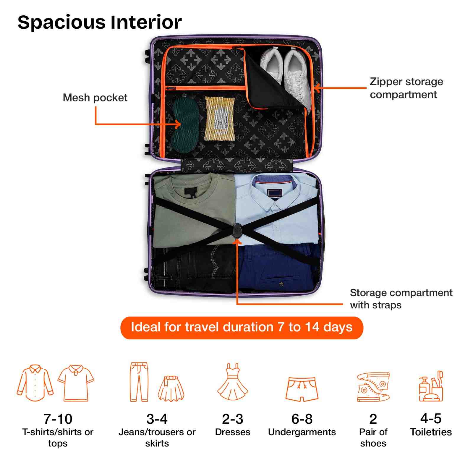 Luggage Set: Hard-sided 2 piece luggage set, includes the following sizes: Small: 20-inch & Medium: 24-inch. These suitcases are ideal for travel duration ranging from 5-7 days, making it the perfect companion for weekend getaways, business trips, or vacations. Suitcases can hold weight up to 8-15 Kgs.