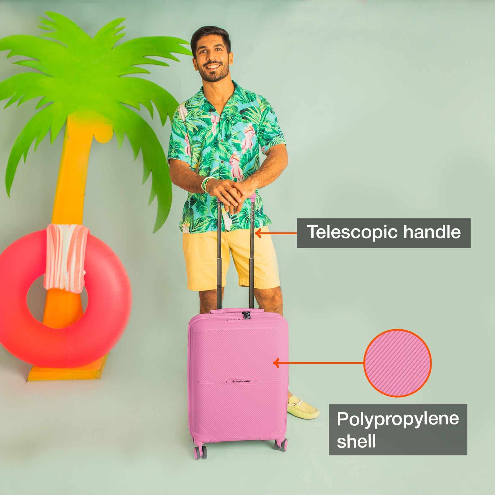 Small (S) Lightweight Hard-Side Cabin Luggage (55cm/20 inches): Travel with our cabin-sized luggage crafted from unbreakable polypropylene material, offering long-lasting durability and protection for your belongings. This compact luggage is designed to carry up to 15 kg of weight and can accommodate materials for a short trip of 2-3 days.