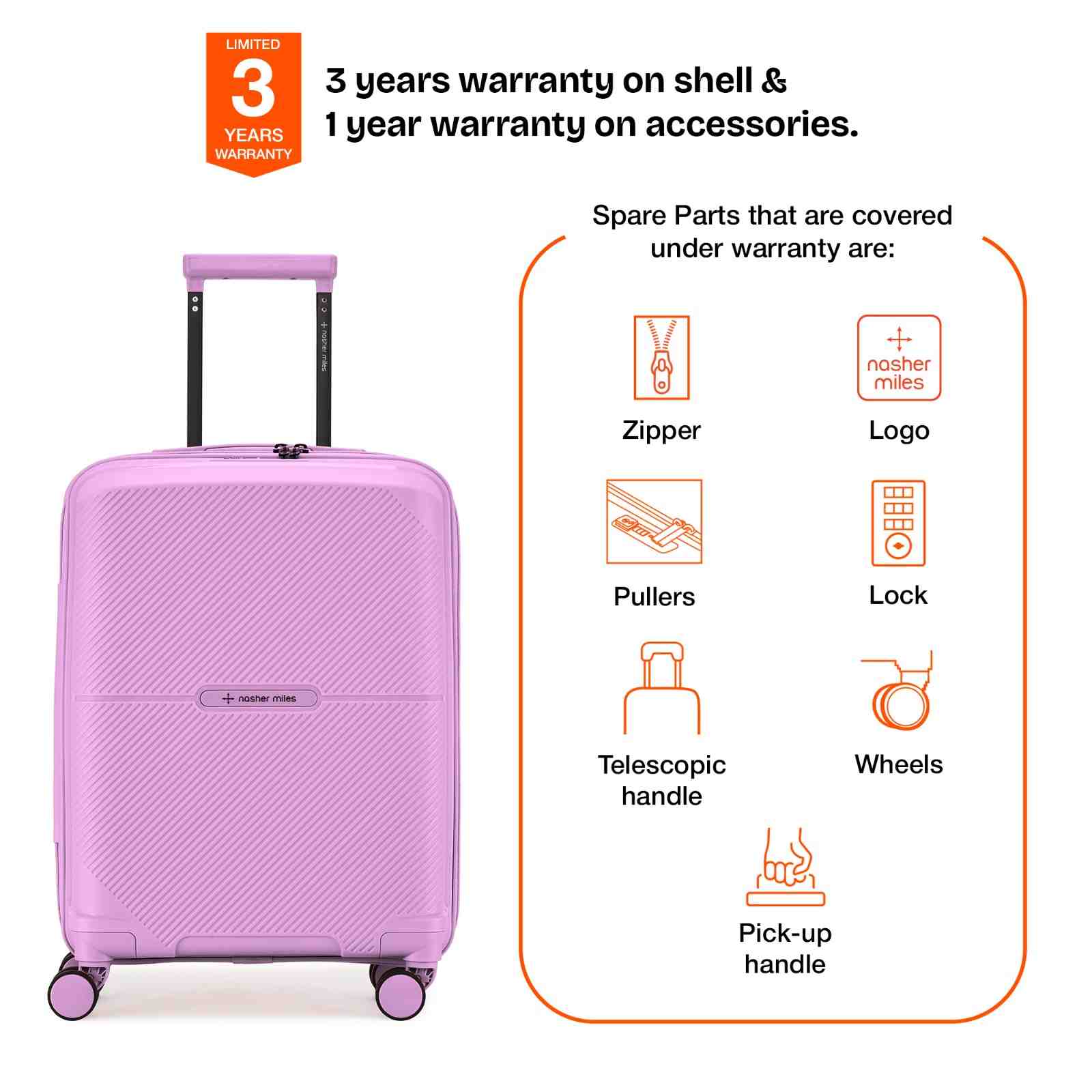 Warranty: 3 Years warranty on shell & 1 year warranty on accessories. Wear & Tear for product under use and scratches are not covered.