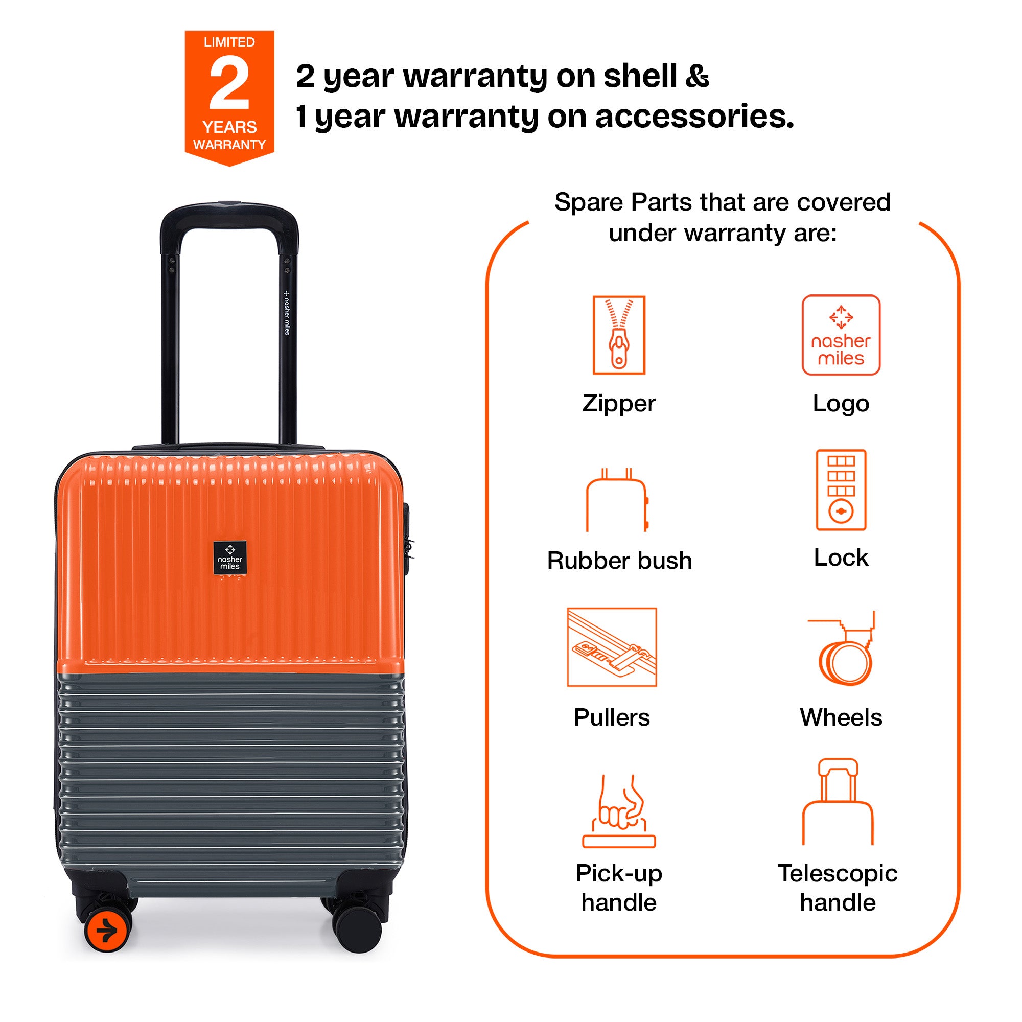2 Years warranty on shell & 1 year warranty on accessories.Wear & Tear for product under use and scratches are not covered.
