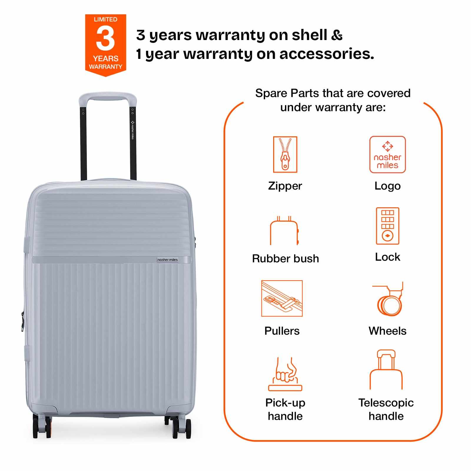 Warranty: 3 Years warranty on shell & 1 year warranty on accessories. Wear & Tear for product under use and scratches are not covered.