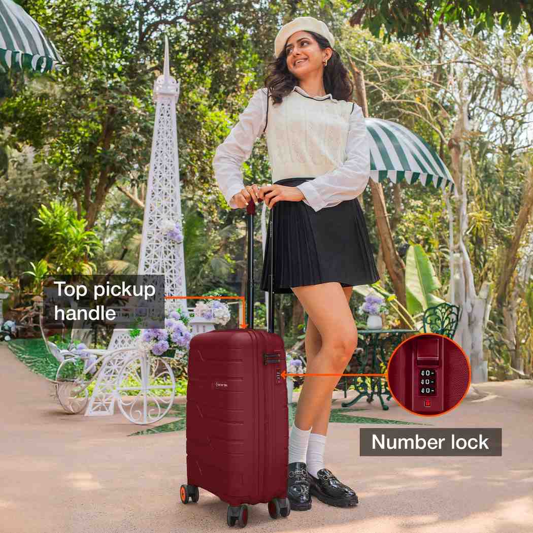 Carry-On Small (S): This 20-inch lightweight, hard-sided cabin trolley bag is perfect for weekend trips or traveling abroad. It is ideal for travels lasting one to five days without the trouble of luggage check-in. Suitcase can hold weight up to 8 kgs.