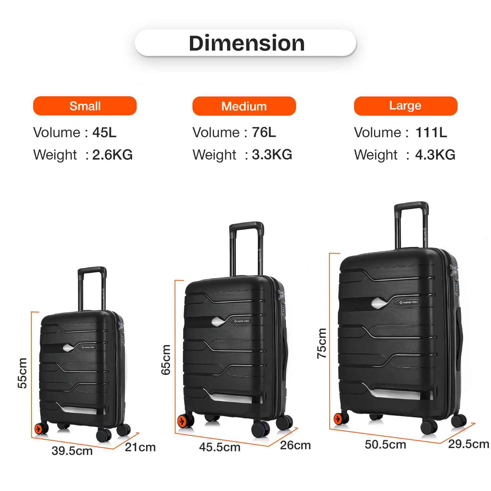 Luggage Set: Hard-sided 2-piece luggage set, includes the following sizes: Medium: 24-inch & Large: 28-inch. Both the bags can be used as check-in luggage.It is ideal for travels lasting than a week. Suitcase can hold weight up to 15-20 Kgs.
