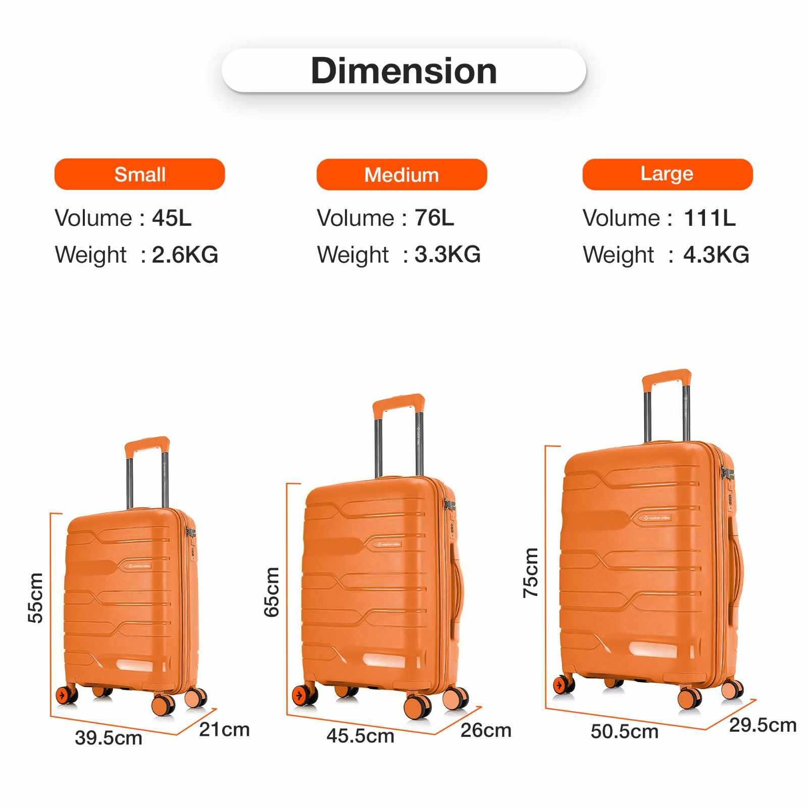Luggage Set: Hard-sided 3-piece luggage set, includes the following sizes: Small: 20-inch, Medium: 24-inch & Large: 28-inch. It is ideal for travels lasting than a week. Suitcase can hold weight up to 8-15-20 Kgs.