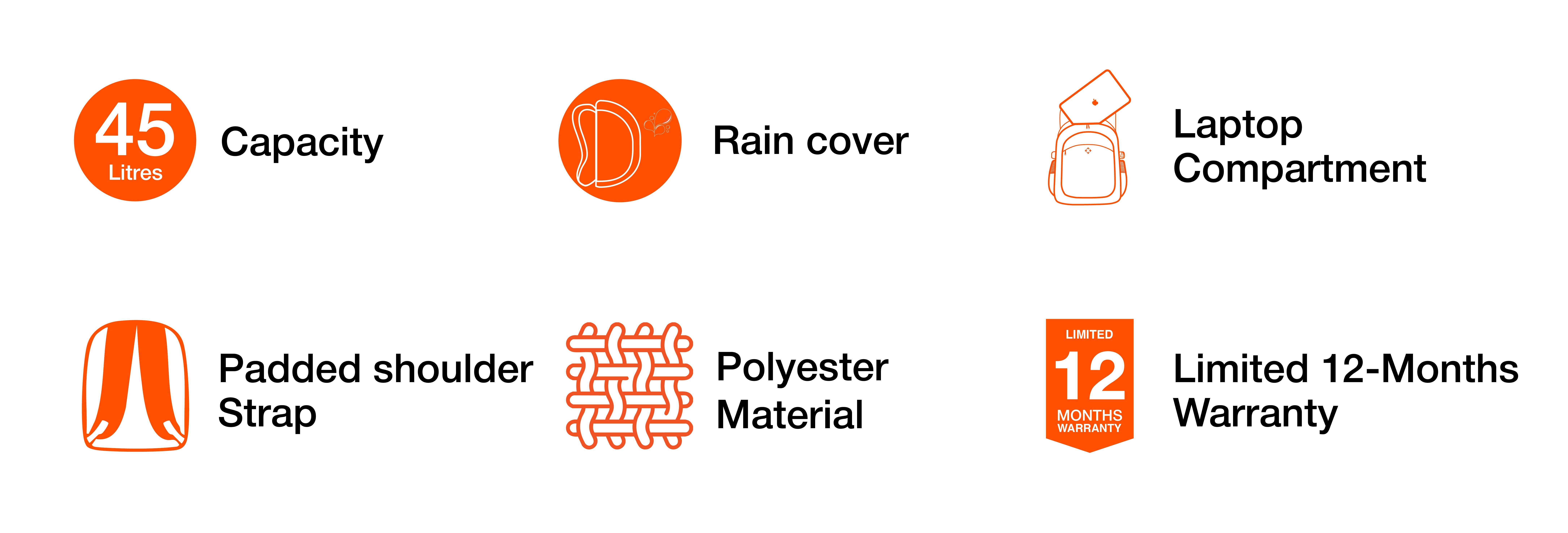 Durable Material: Crafted from sturdy polyester fabric, this backpack is built to safeguard your school or college essentials with durability and longevity. With a spacious of 45-liter capacity. The trendy printed design adds a stylish flair, making it a perfect match for casual outfits and uniforms.