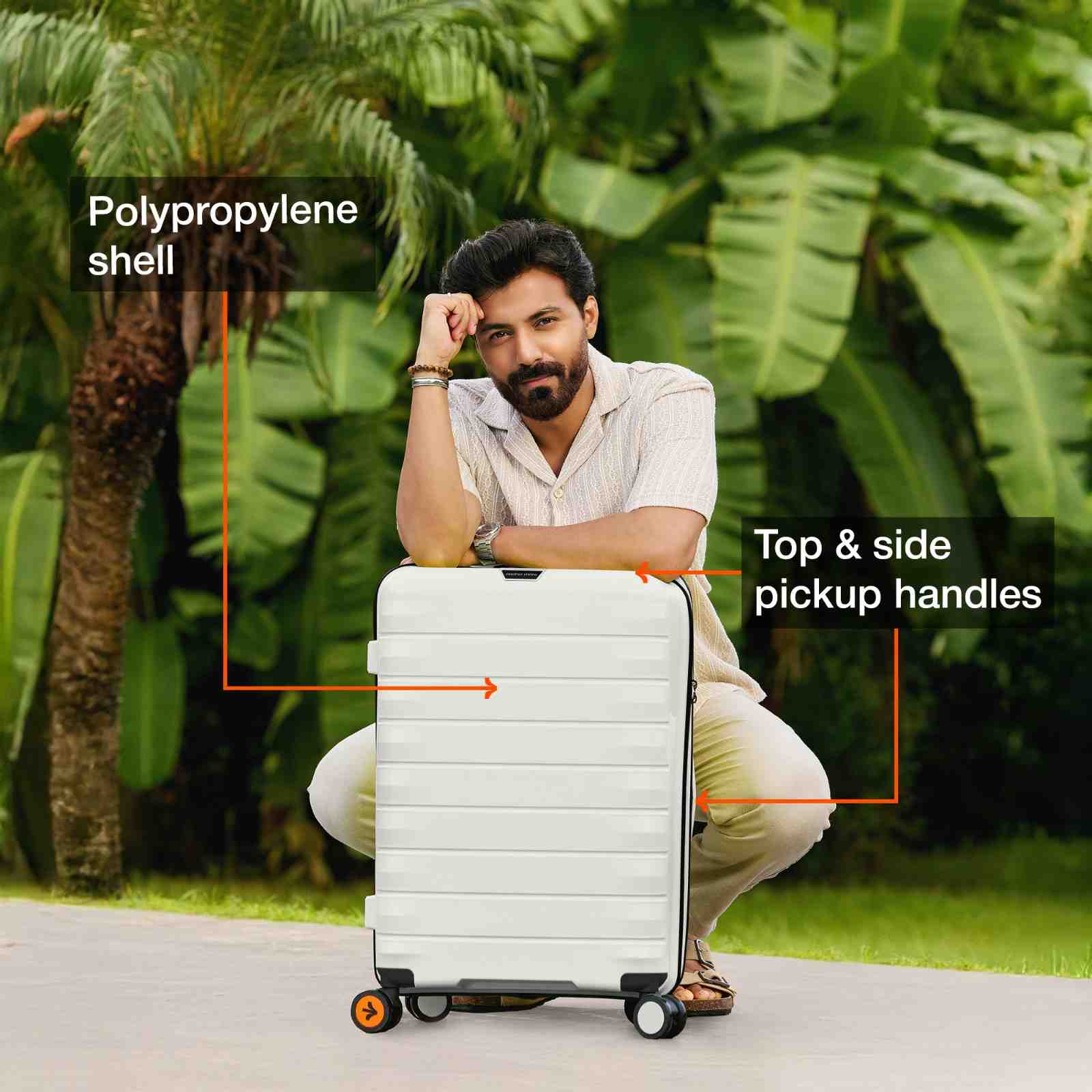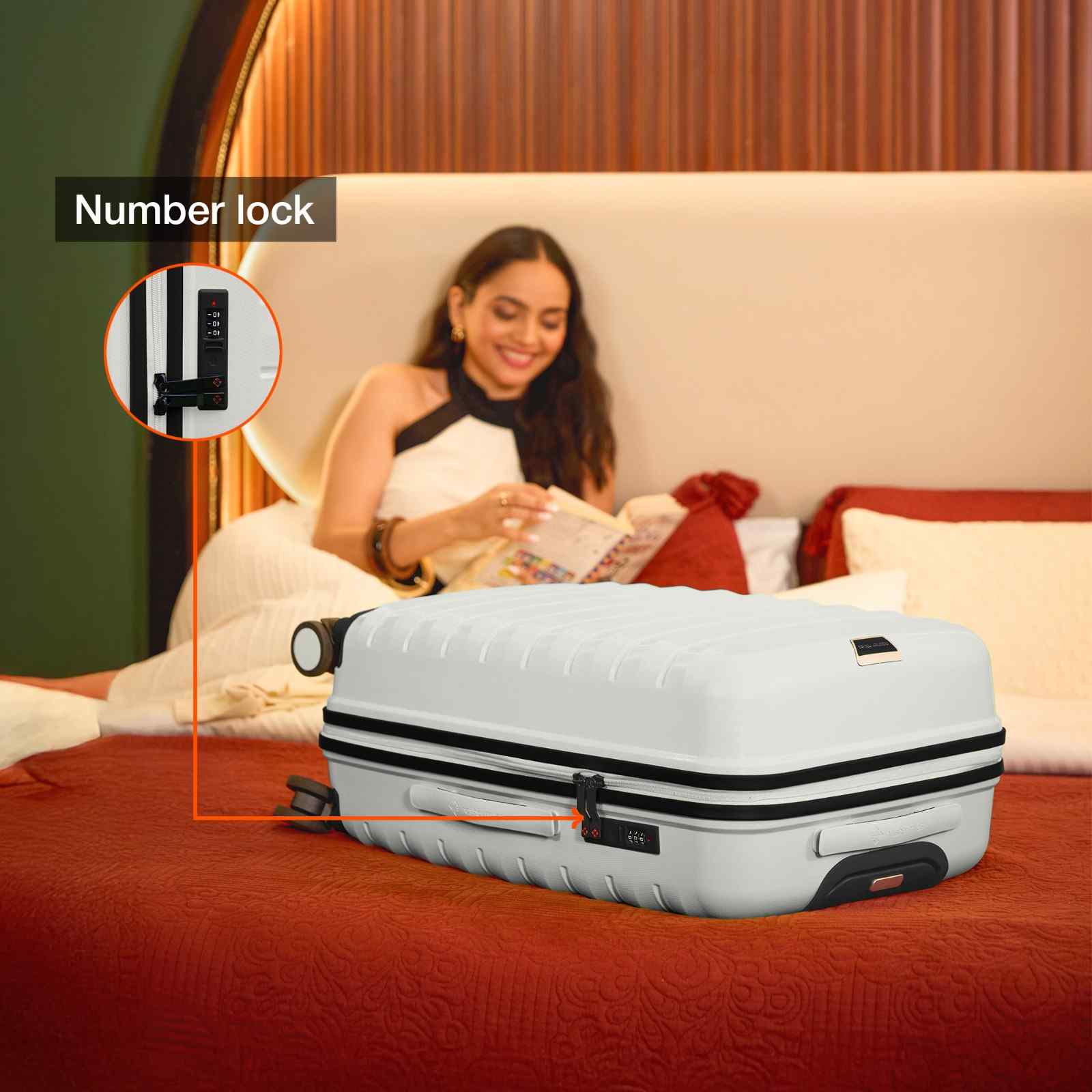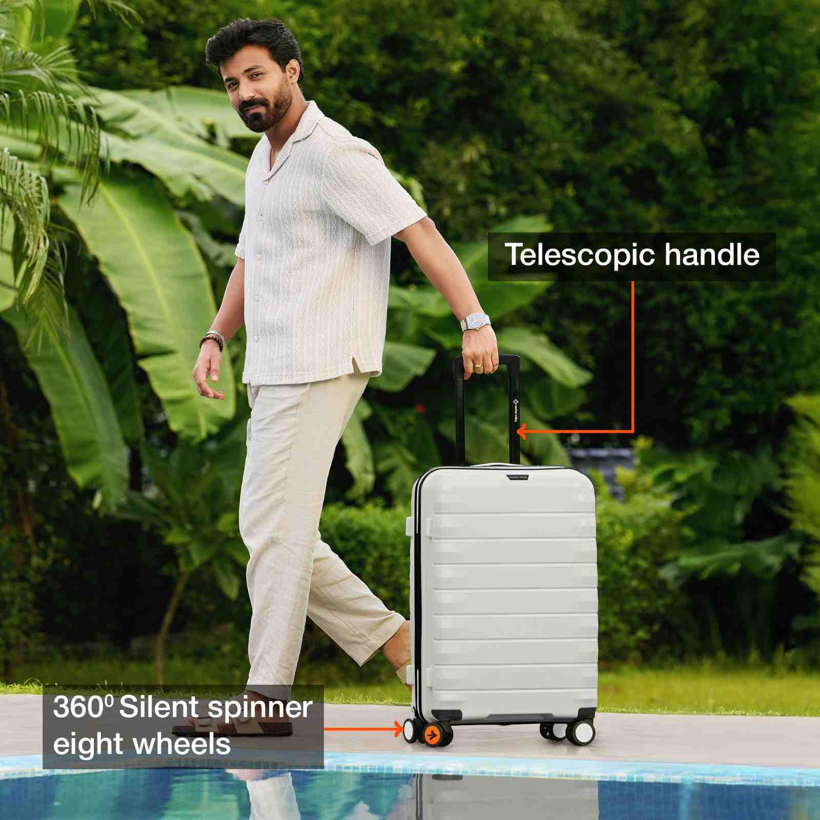 Durable Construction: Outer material of the luggage trolley is designed with high-quality unbreakable polypropylene material for exceptional durability and a lightweight feel. This suitcase offers protection to keep your belongings safe. The telescopic handle is made of aluminum for easy handling.