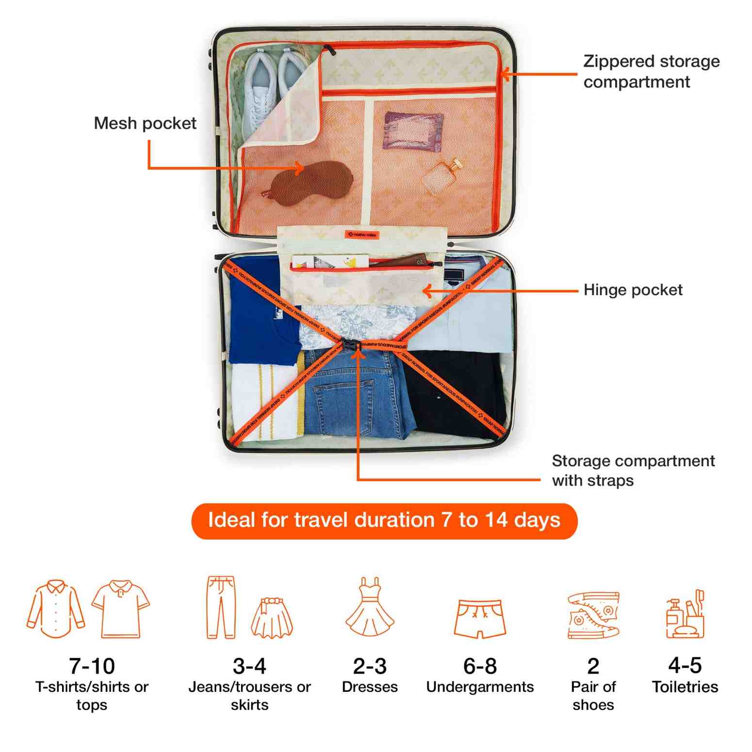 Spacious Interiors: Compact yet spacious, our trolley bag features dual-sided interior storage. One side comes with adjustable straps and the other one is a zippered section to keep your clothes, accessories and electronics neatly organized. Each bag has a separate number lock (reset code 0-0-0)