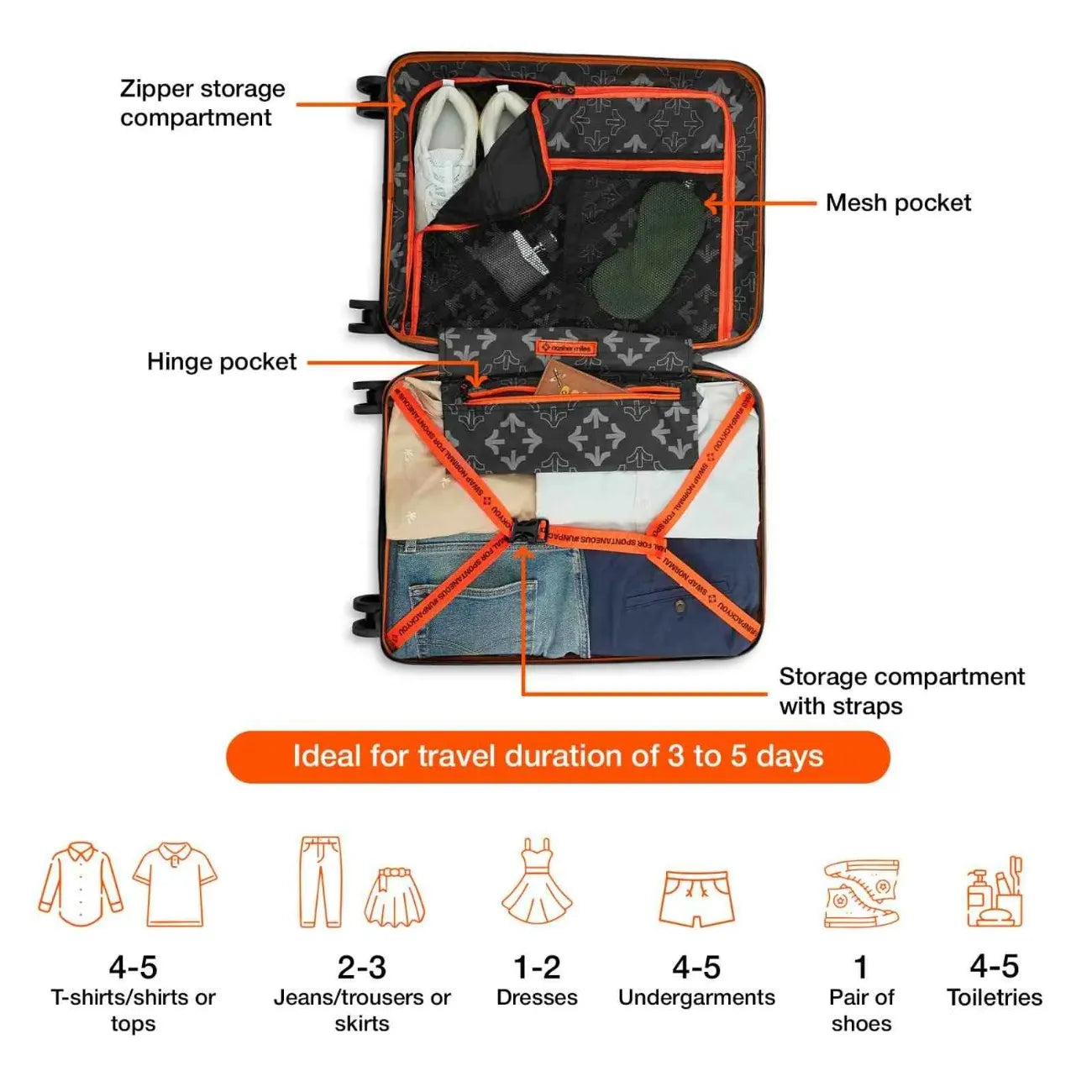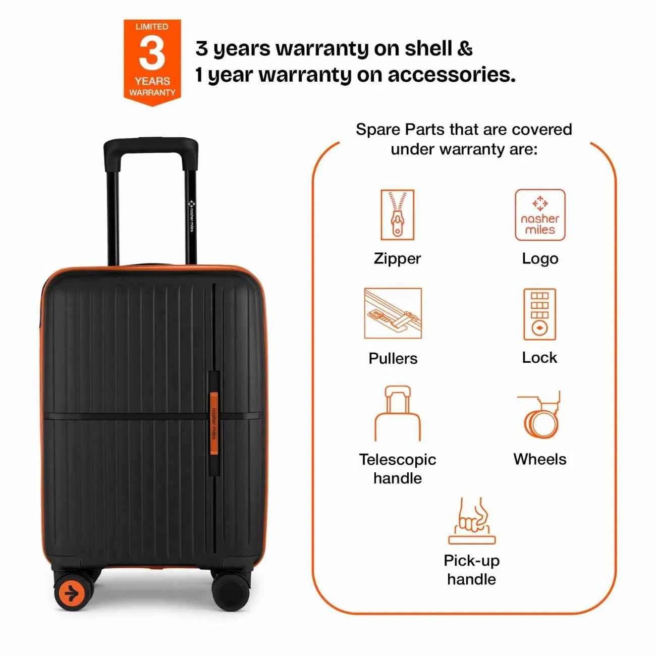 Secure Number Lock: Enjoy worry-free travels with the built-in number lock on the Nasher Miles luggage. This feature provides enhanced security, allowing you to keep your belongings protected and giving you peace of mind throughout your journey.