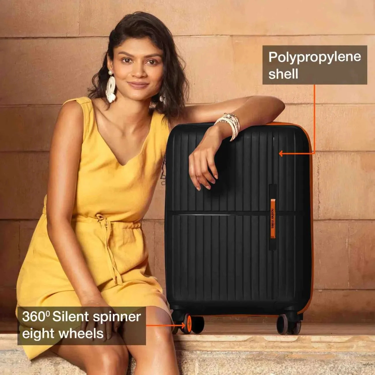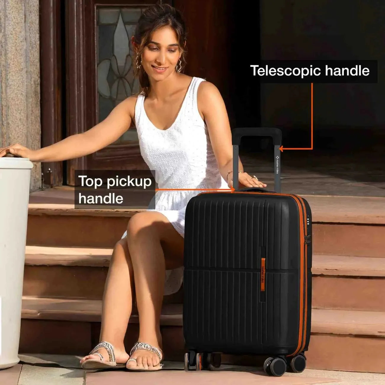 Effortless Manoeuvrability: with Matching Accessories: Designed with 8 multi-directional wheels that allow your suitcase to glide alongside you effortlessly and a telescopic handle for smooth mobility. Includes a convenient top pick-up handle across all sizes and an additional side pickup handle in check-in luggage for easy lifting and carrying. Complete with matching accessories for a coordinated and functional travel experience.