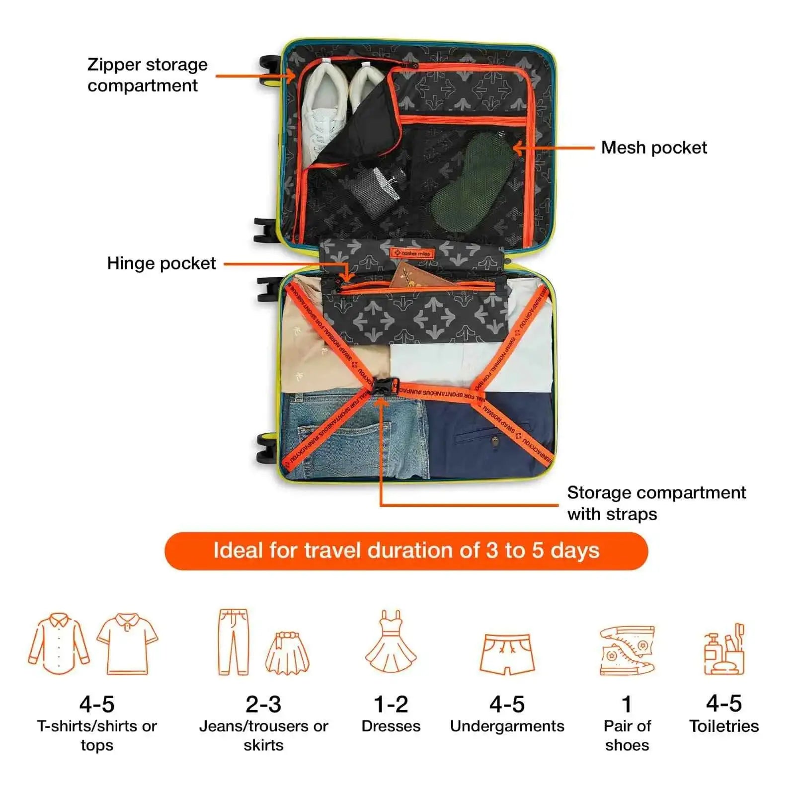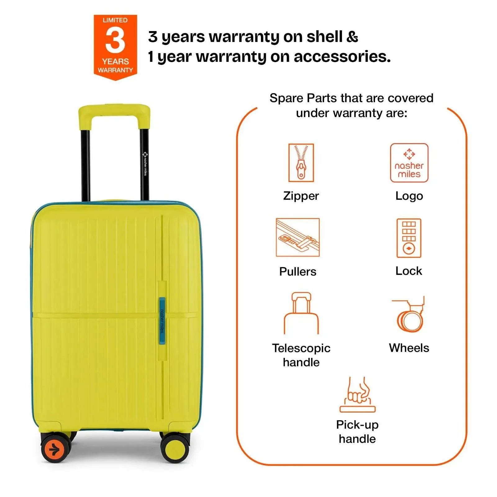 Secure Number Lock: Enjoy worry-free travels with the built-in number lock on the Nasher Miles luggage. This feature provides enhanced security, allowing you to keep your belongings protected and giving you peace of mind throughout your journey.