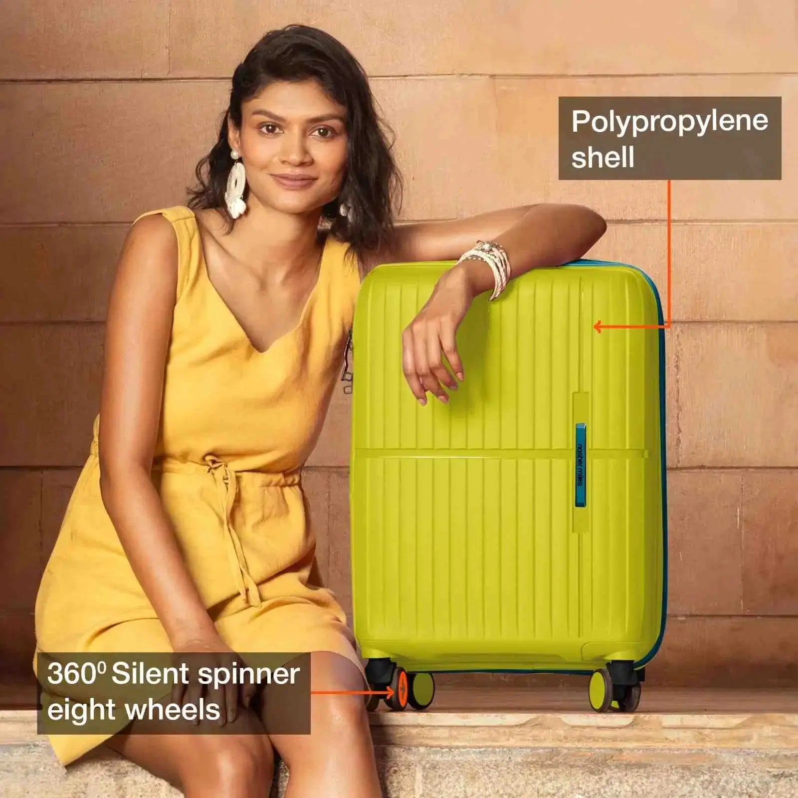 Effortless Manoeuvrability: with Matching Accessories: Designed with 8 multi-directional wheels that allow your suitcase to glide alongside you effortlessly and a telescopic handle for smooth mobility. Includes a convenient top pick-up handle across all sizes and an additional side pickup handle in check-in luggage for easy lifting and carrying. Complete with matching accessories for a coordinated and functional travel experience.