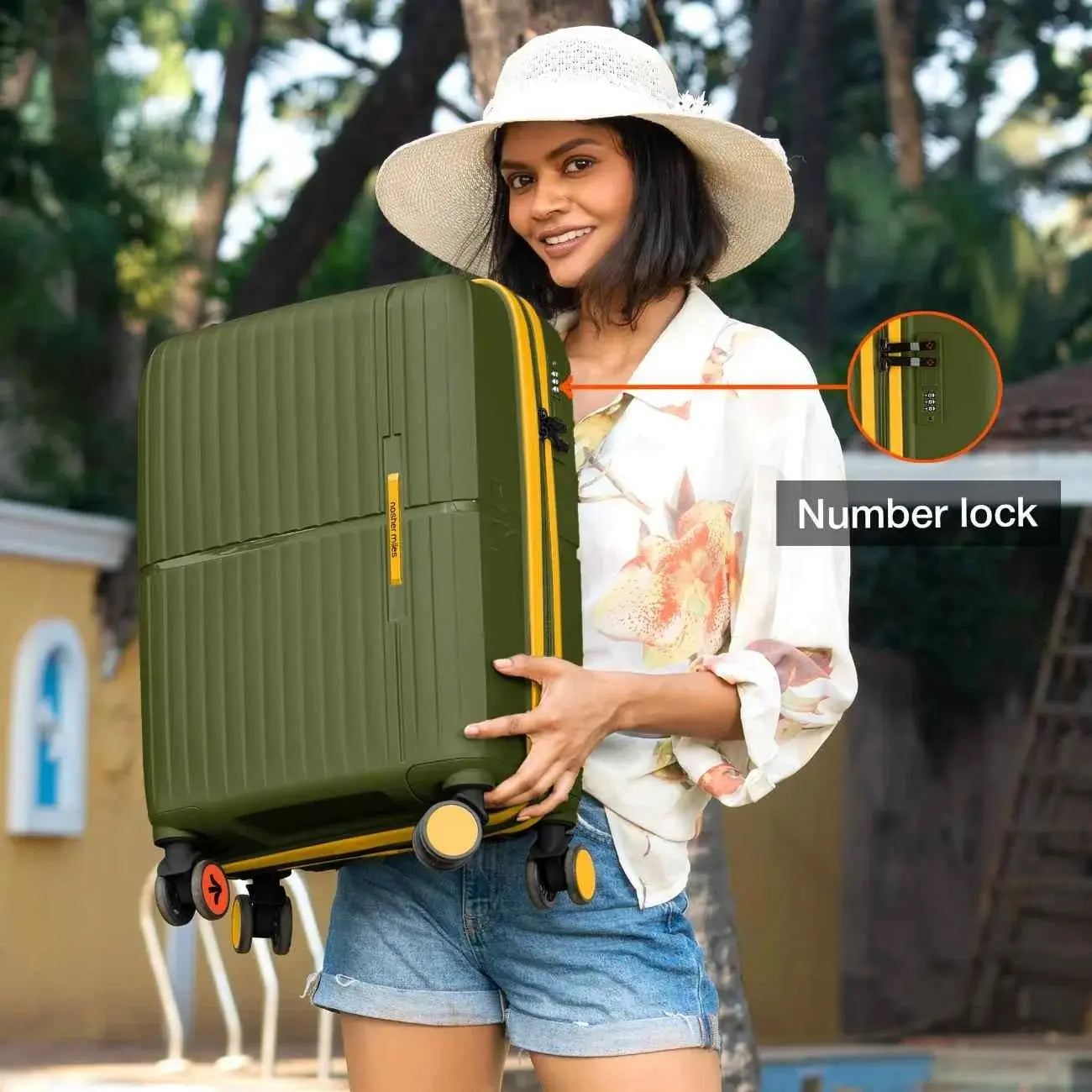 Spacious Interiors: Compact yet spacious, our trolley bag features dual-sided interior storage. One side comes with adjustable straps and the other one is a zippered section to keep your clothes, accessories and electronics neatly organized. Each bag has a separate number lock (reset code 0-0-0)