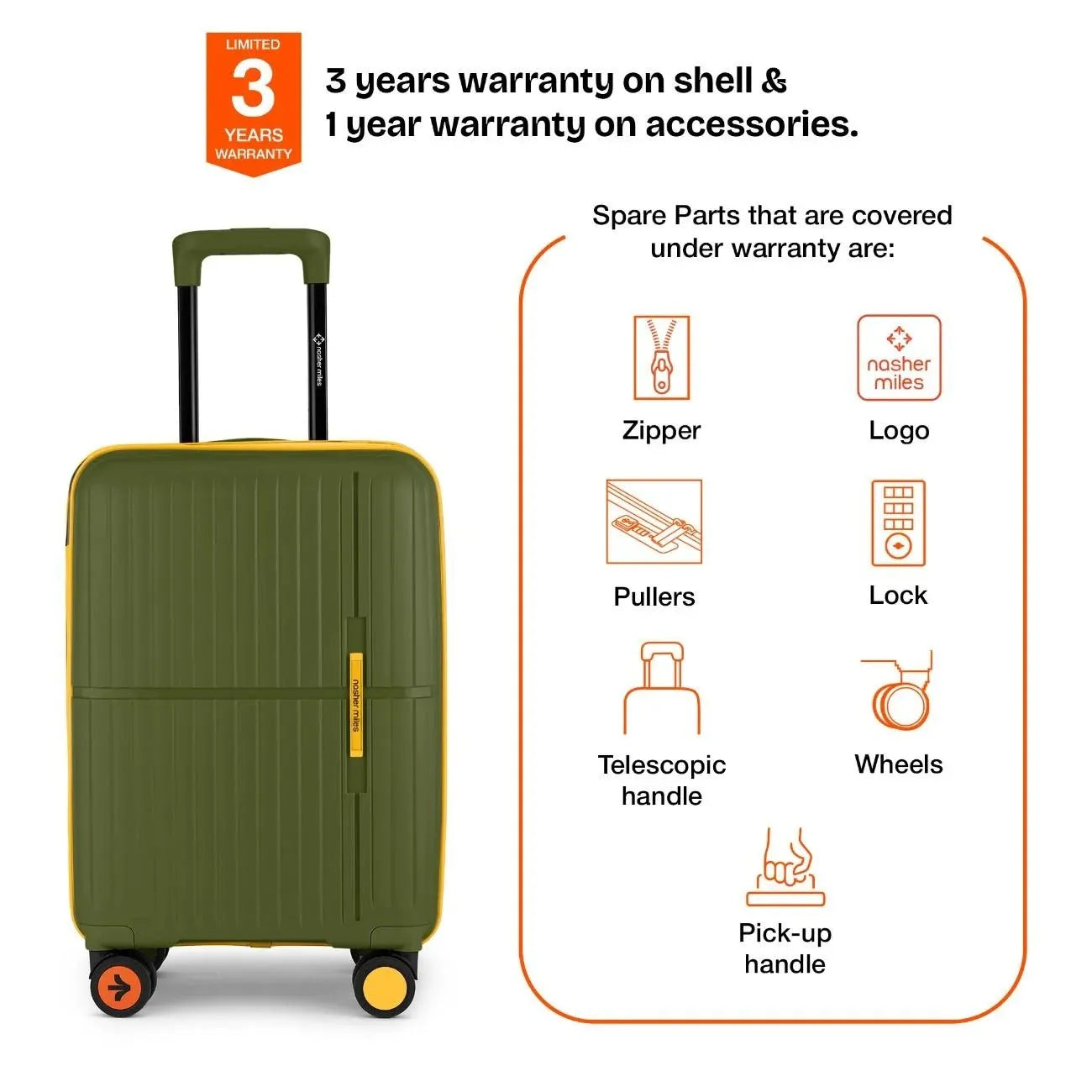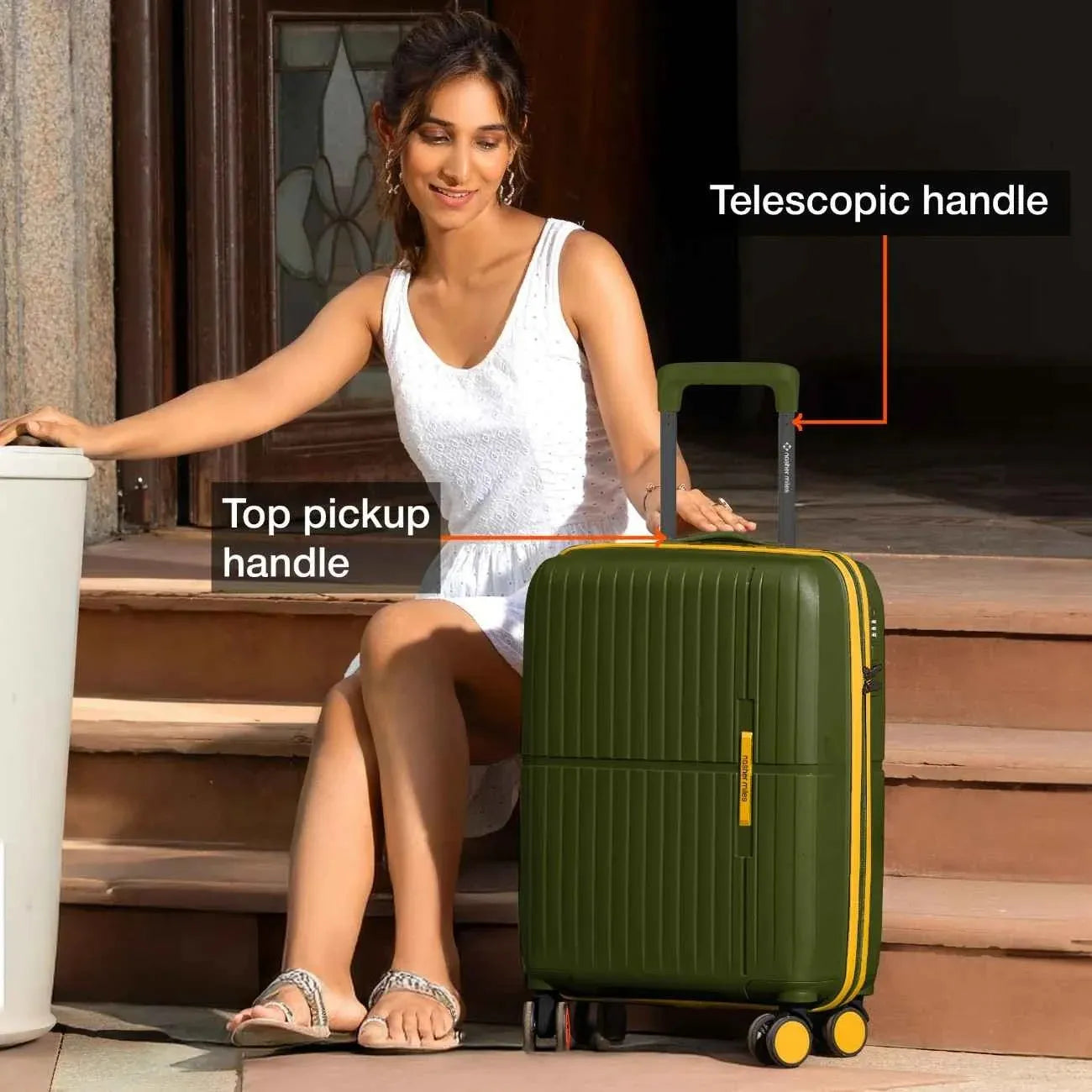 Durable Construction: Outer material of the luggage trolley is designed with high-quality unbreakable polypropylene material for exceptional durability and a lightweight feel. This suitcase offers protection to keep your belongings safe. The telescopic handle is made of aluminum for easy handling.