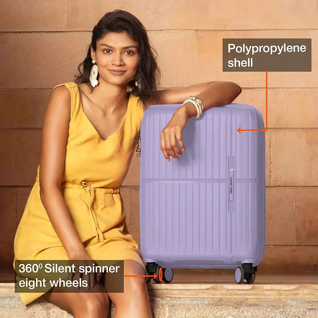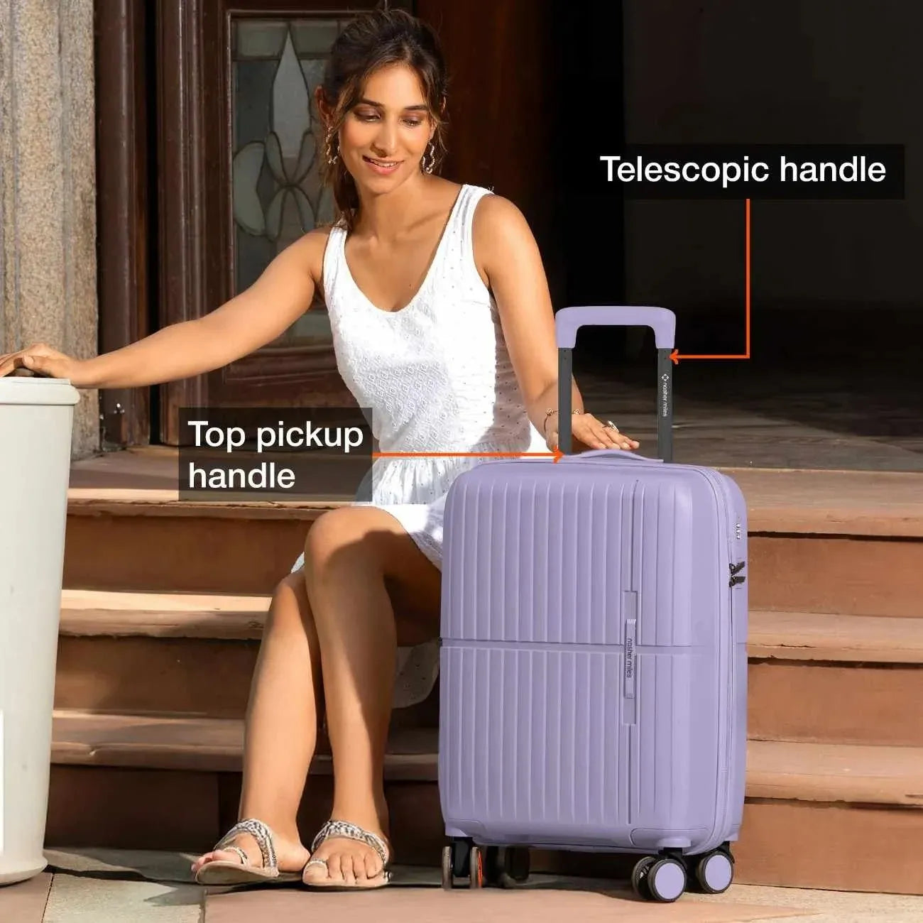 Effortless Manoeuvrability: with Matching Accessories: Designed with 8 multi-directional wheels that allow your suitcase to glide alongside you effortlessly and a telescopic handle for smooth mobility. Includes a convenient top pick-up handle across all sizes and an additional side pickup handle in check-in luggage for easy lifting and carrying. Complete with matching accessories for a coordinated and functional travel experience.