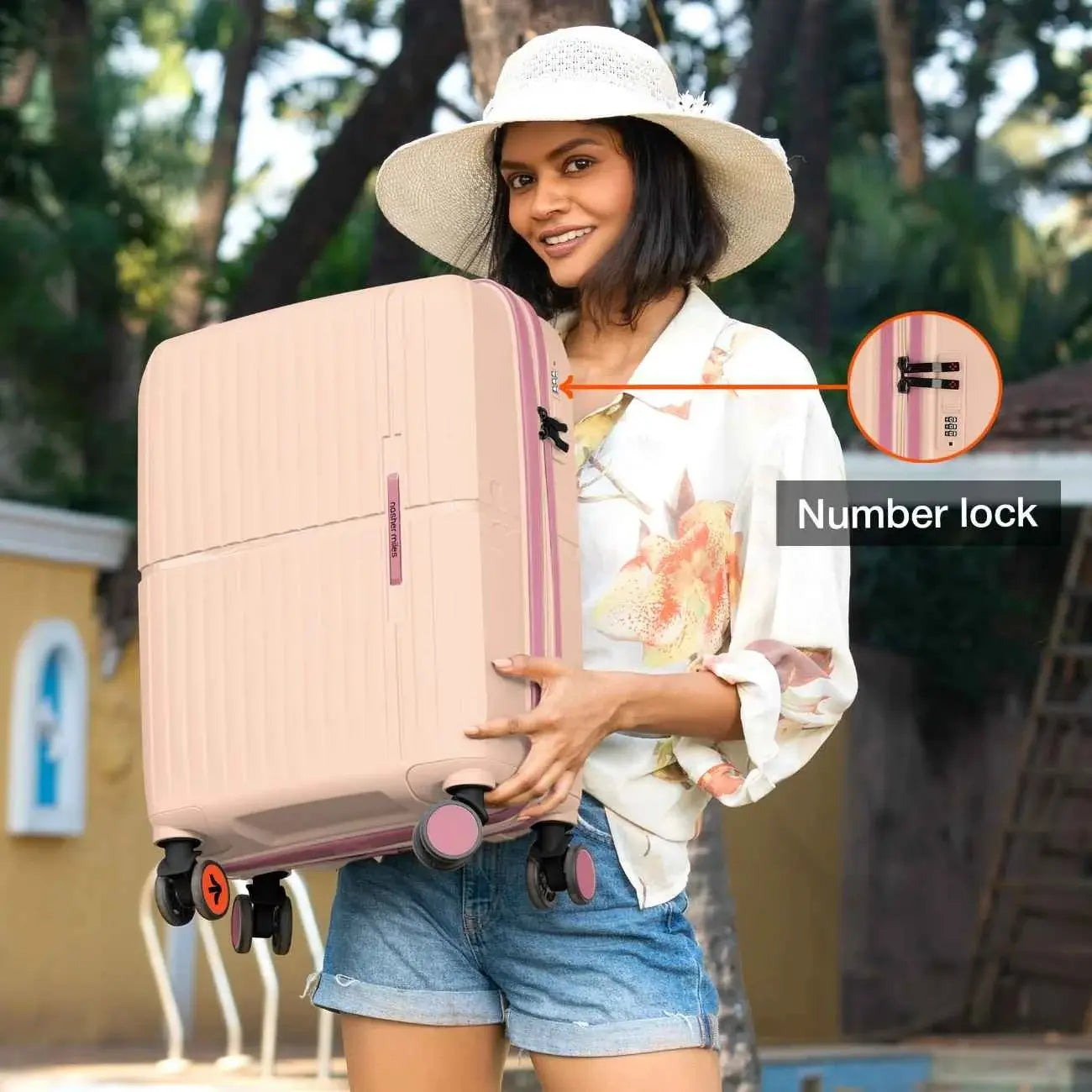 Spacious Interiors: Compact yet spacious, our trolley bag features dual-sided interior storage. One side comes with adjustable straps and the other one is a zippered section to keep your clothes, accessories and electronics neatly organized. Each bag has a separate number lock (reset code 0-0-0)
