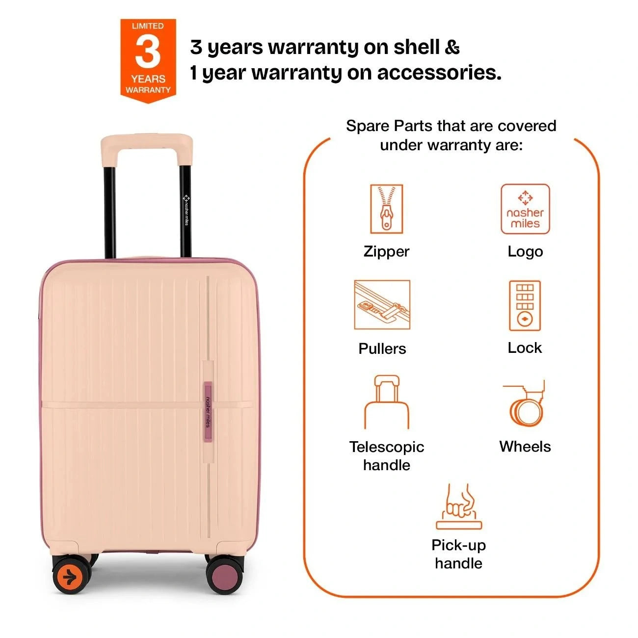 Durable Construction: Outer material of the luggage trolley is designed with high-quality unbreakable polypropylene material for exceptional durability and a lightweight feel. This suitcase offers protection to keep your belongings safe. The telescopic handle is made of aluminum for easy handling.