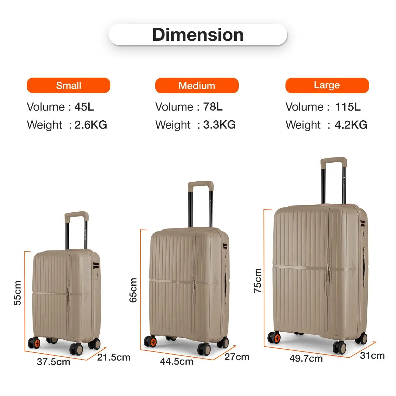 Large Lightweight Hard-Side Check-In Luggage (75cm/28 inches): Embrace exceptional capacity and durability with our large check-in luggage, crafted from unbreakable polypropylene. This luggage is designed to carry up to 25-30 kg of weight and can comfortably accommodate materials for a two-week trip or longer.