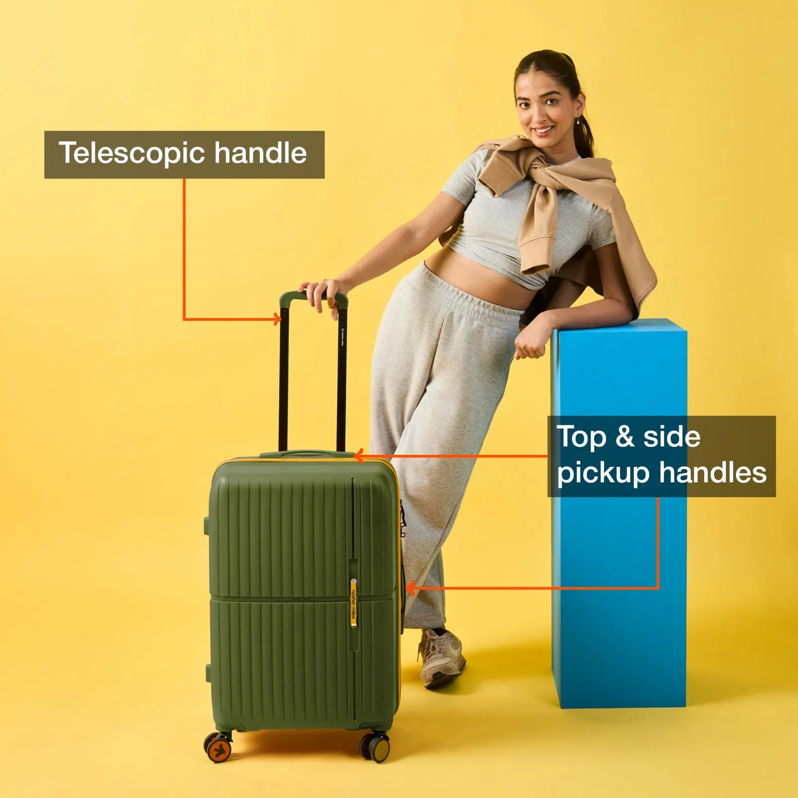 Durable Construction: Outer material of the luggage trolley is designed with high-quality unbreakable polypropylene material for exceptional durability and a lightweight feel. This suitcase offers protection to keep your belongings safe. The telescopic handle is made of aluminum for easy handling.