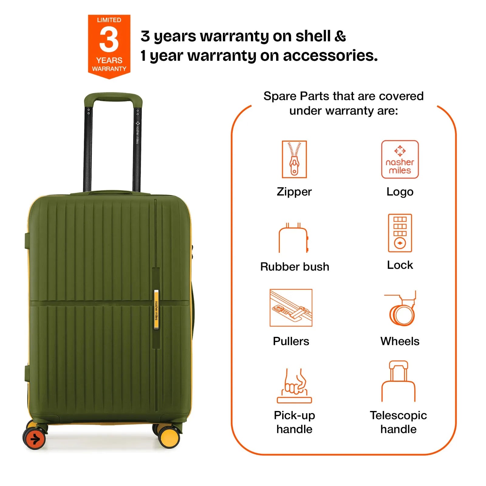 Warranty: 3 Years warranty on shell & 1 year warranty on accessories. Wear & tear for product under use and scratches are not covered.