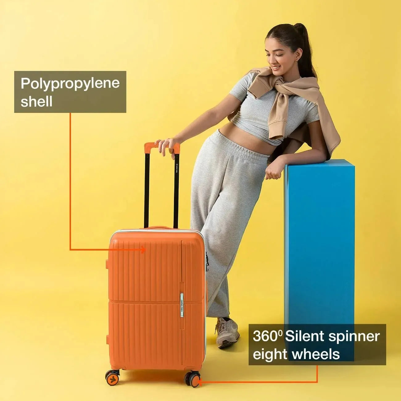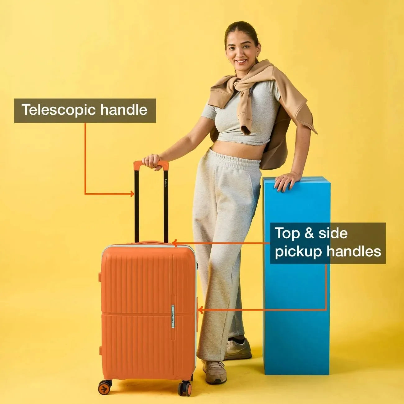 Effortless Manoeuvrability: with Matching Accessories: Designed with 8 multi-directional wheels that allow your suitcase to glide alongside you effortlessly and a telescopic handle for smooth mobility. Includes a convenient top pick-up handle across all sizes and an additional side pickup handle in check-in luggage for easy lifting and carrying. Complete with matching accessories for a coordinated and functional travel experience.