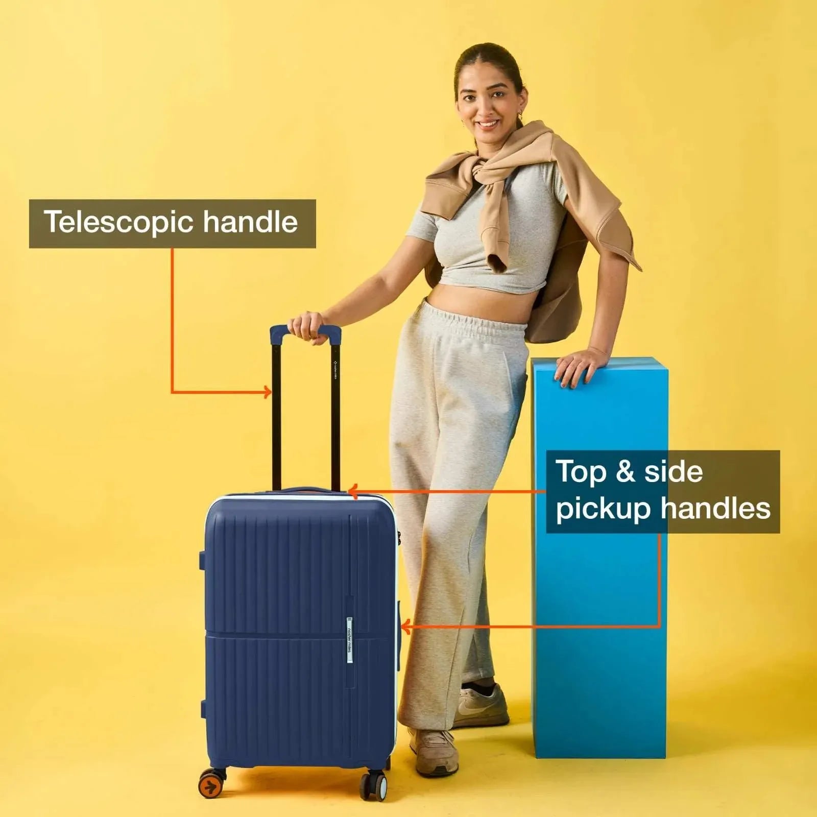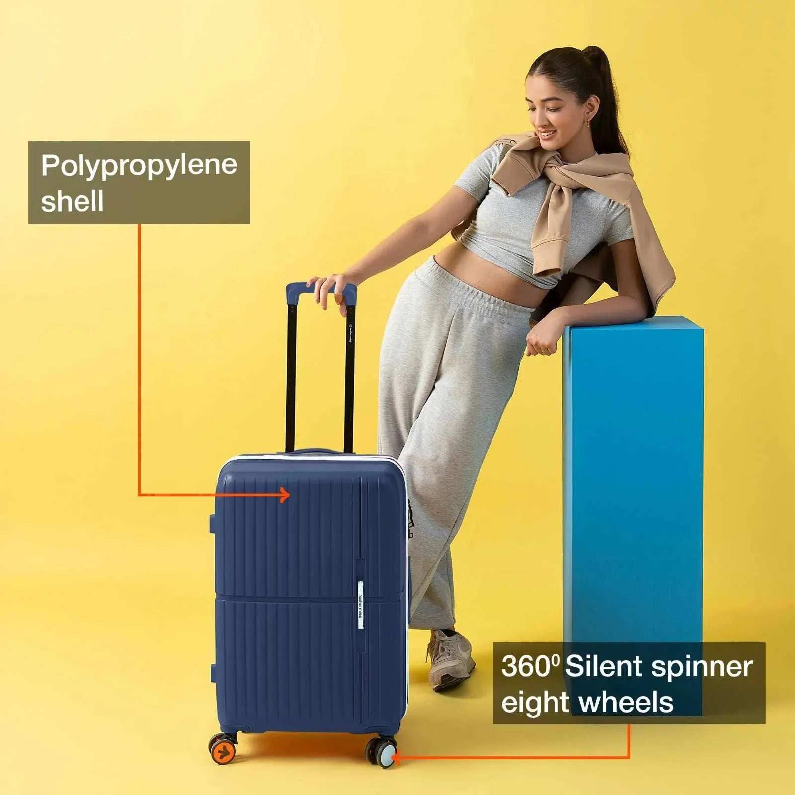 Durable Construction: Outer material of the luggage trolley is designed with high-quality unbreakable polypropylene material for exceptional durability and a lightweight feel. This suitcase offers protection to keep your belongings safe. The telescopic handle is made of aluminum for easy handling.