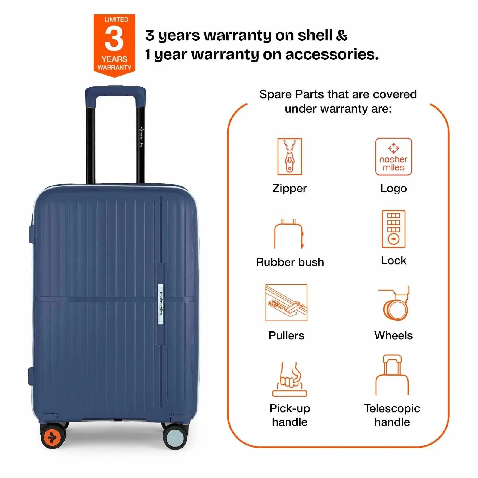 Warranty: 3 Years warranty on shell & 1 year warranty on accessories. Wear & tear for product under use and scratches are not covered.