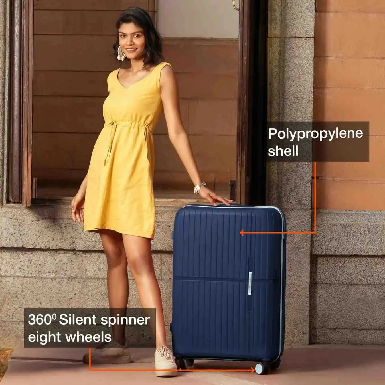 Durable Construction: Outer material of the luggage trolley is designed with high-quality unbreakable polypropylene material for exceptional durability and a lightweight feel. This suitcase offers protection to keep your belongings safe. The telescopic handle is made of aluminum for easy handling.