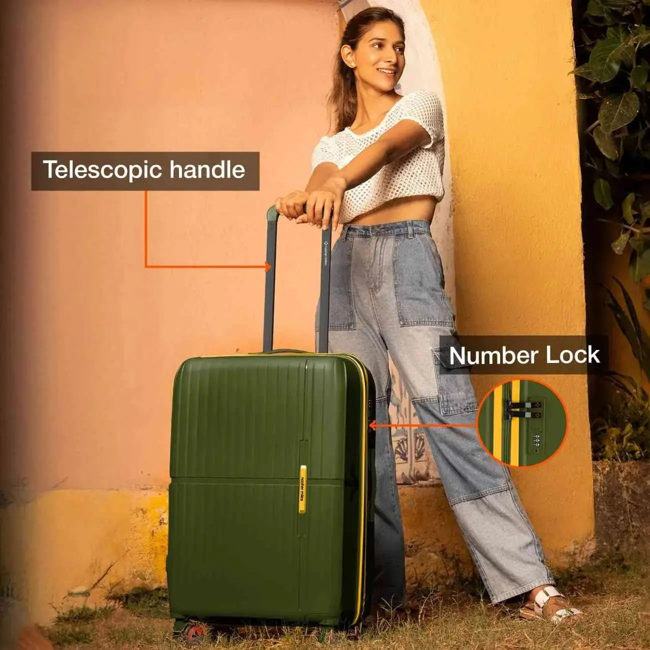 Durable Construction: Outer material of the luggage trolley is designed with high-quality unbreakable polypropylene material for exceptional durability and a lightweight feel. This suitcase offers protection to keep your belongings safe. The telescopic handle is made of aluminum for easy handling.