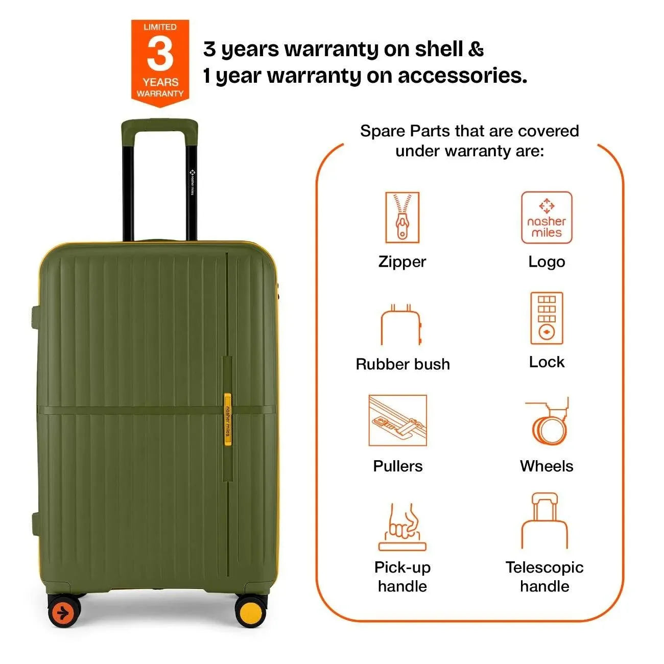 Warranty: 3 Years warranty on shell & 1 year warranty on accessories. Wear & tear for product under use and scratches are not covered.
