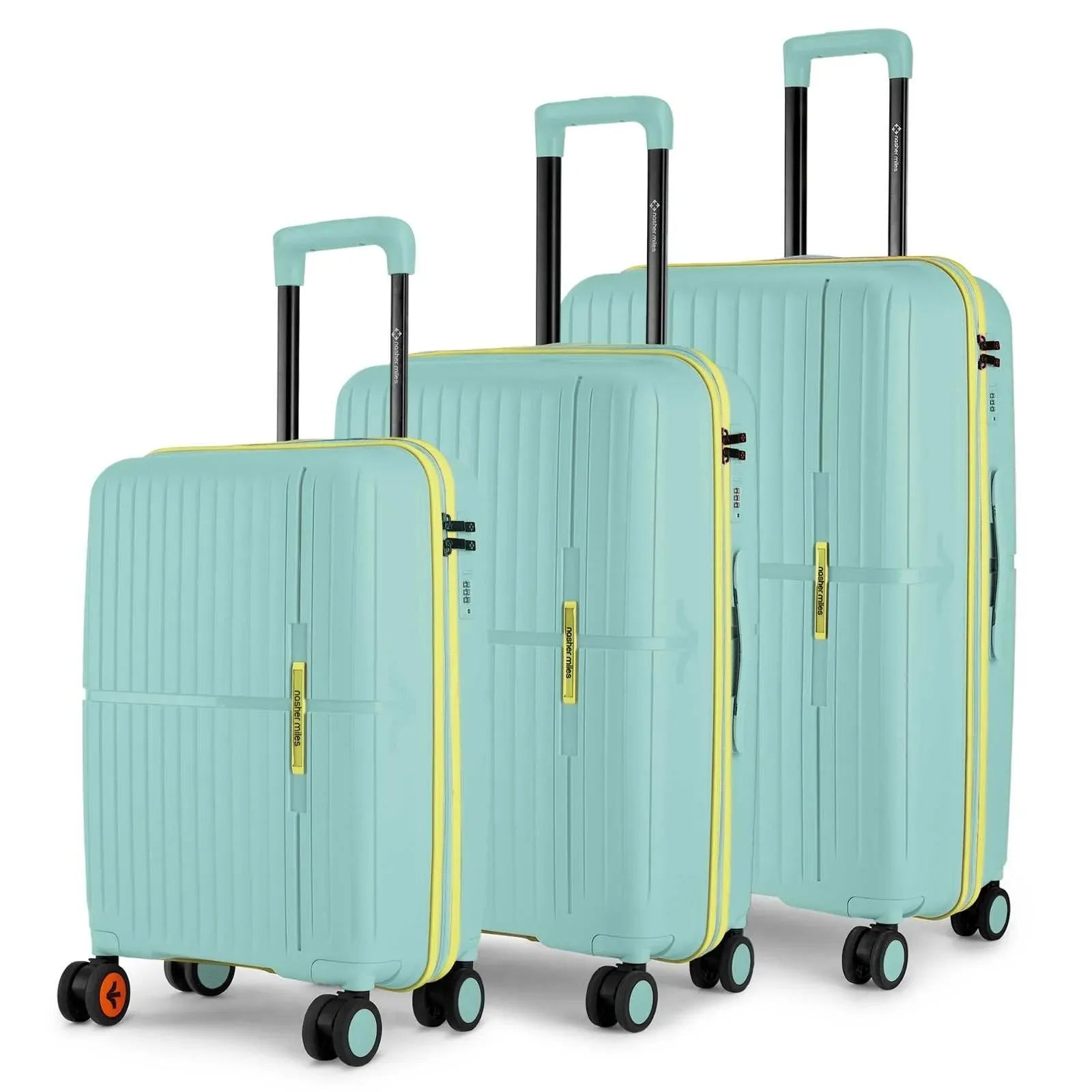 Lightweight Hard-Side 3-Piece Luggage Set: This versatile set includes small (55 cm), medium (65 cm), and large (75 cm) sizes, all crafted from unbreakable polypropylene for exceptional protection during your travels. The small cabin luggage is designed to carry up to 10-15 kg of weight and can accommodate materials for a short trip of 2-3 days. The medium-sized luggage can carry up to 20-25 kg of weight and is suitable for a week-long trip or longer. The large-sized luggage can carry up to 25-30 kg of weight and is ideal for extended vacations of 10 days or more.