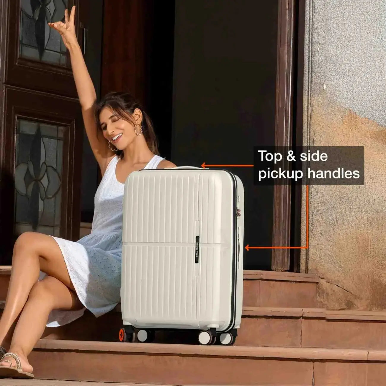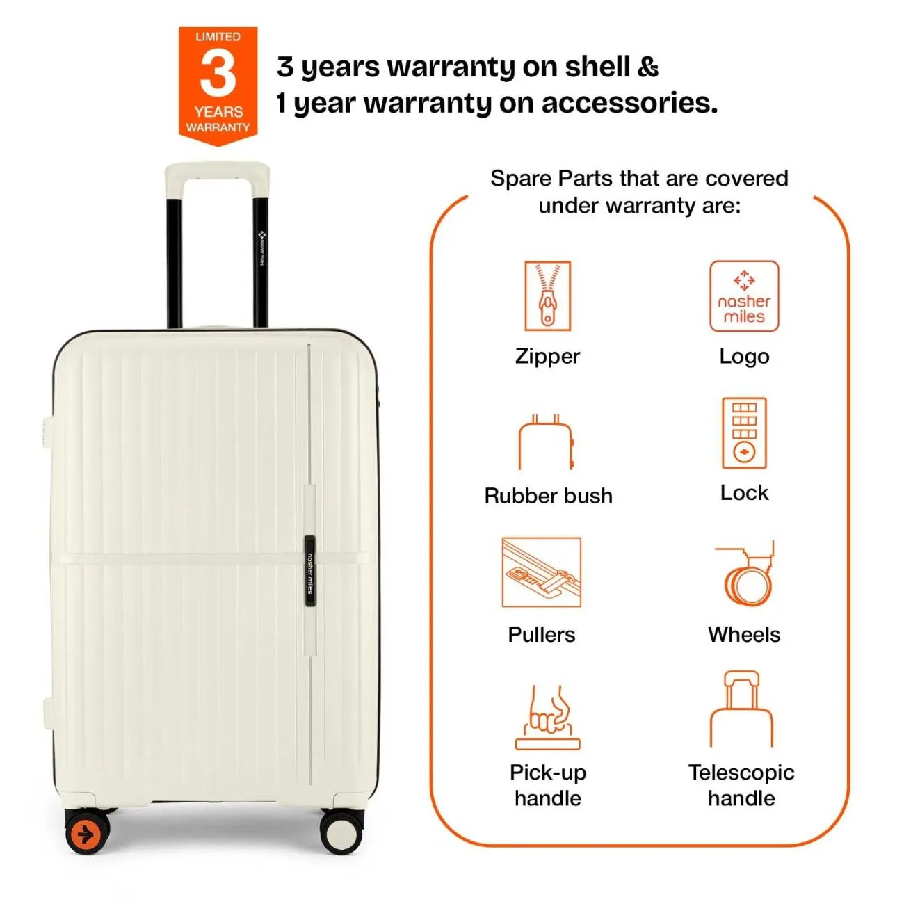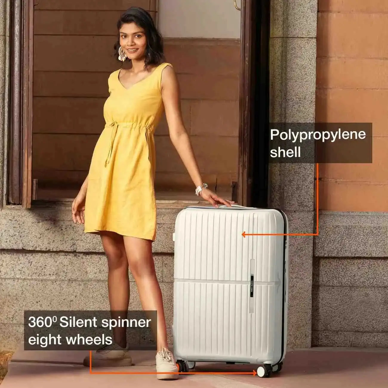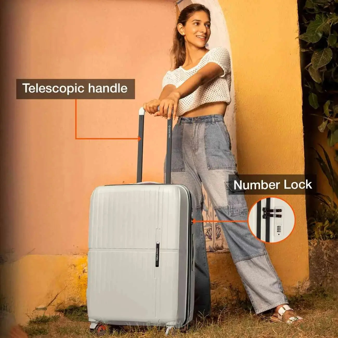 Durable Construction: Outer material of the luggage trolley is designed with high-quality unbreakable polypropylene material for exceptional durability and a lightweight feel. This suitcase offers protection to keep your belongings safe. The telescopic handle is made of aluminum for easy handling.