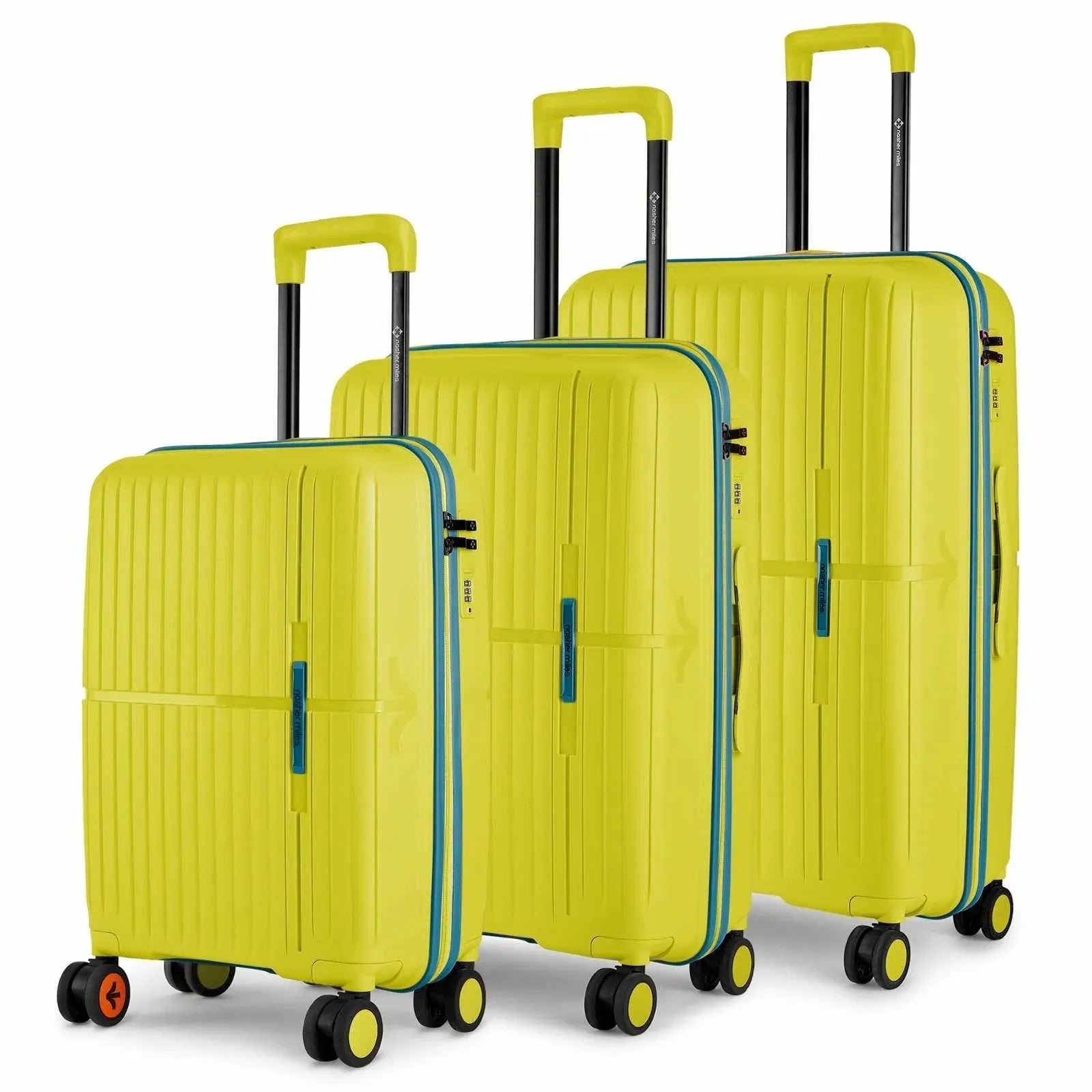 Lightweight Hard-Side 3-Piece Luggage Set: This versatile set includes small (55 cm), medium (65 cm), and large (75 cm) sizes, all crafted from unbreakable polypropylene for exceptional protection during your travels. The small cabin luggage is designed to carry up to 10-15 kg of weight and can accommodate materials for a short trip of 2-3 days. The medium-sized luggage can carry up to 20-25 kg of weight and is suitable for a week-long trip or longer. The large-sized luggage can carry up to 25-30 kg of weight and is ideal for extended vacations of 10 days or more.