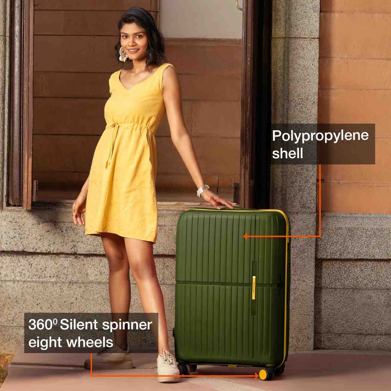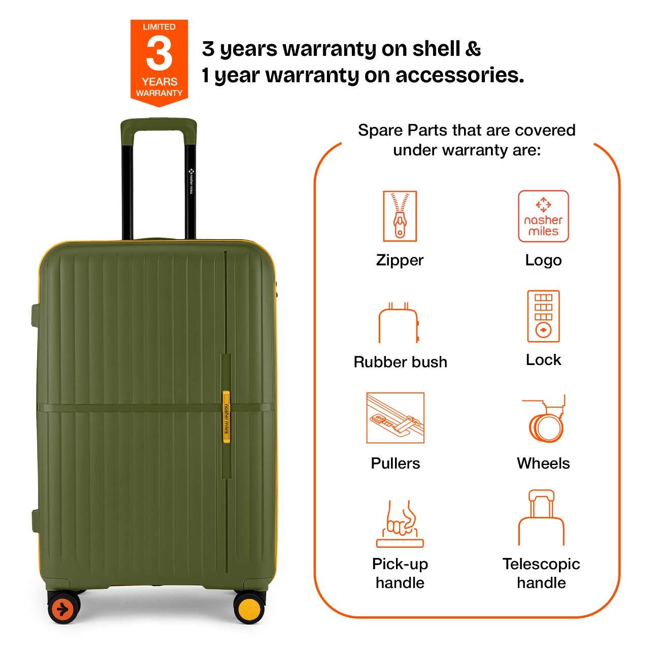 Durable Construction: Outer material of the luggage trolley is designed with high-quality unbreakable polypropylene material for exceptional durability and a lightweight feel. This suitcase offers protection to keep your belongings safe. The telescopic handle is made of aluminum for easy handling.