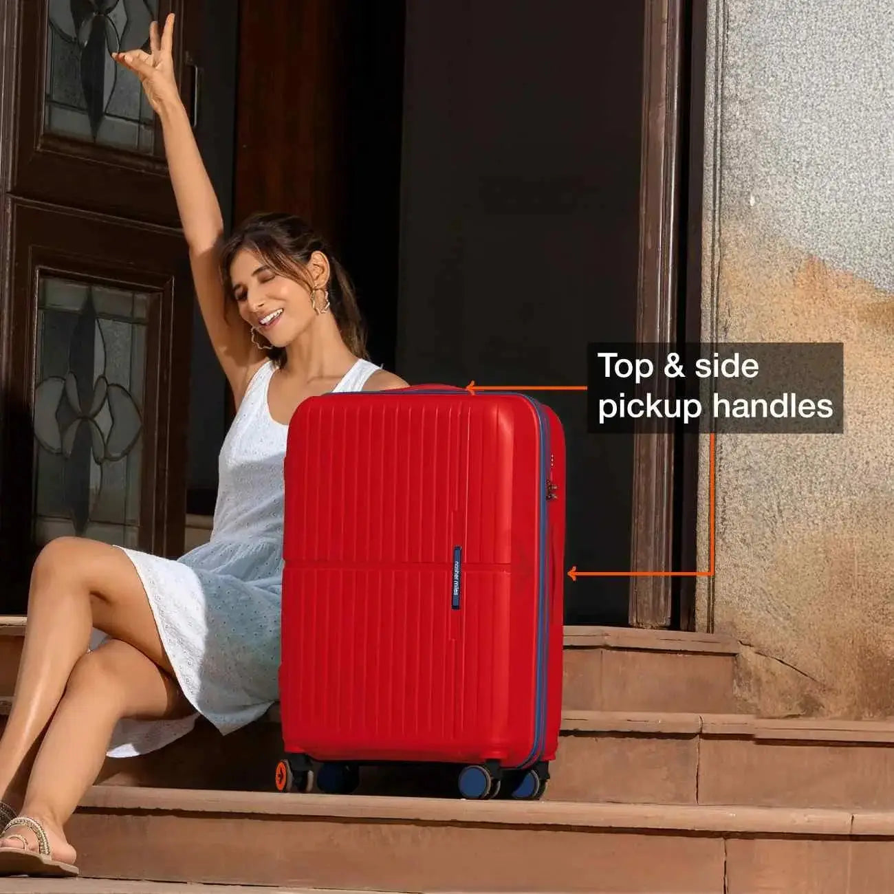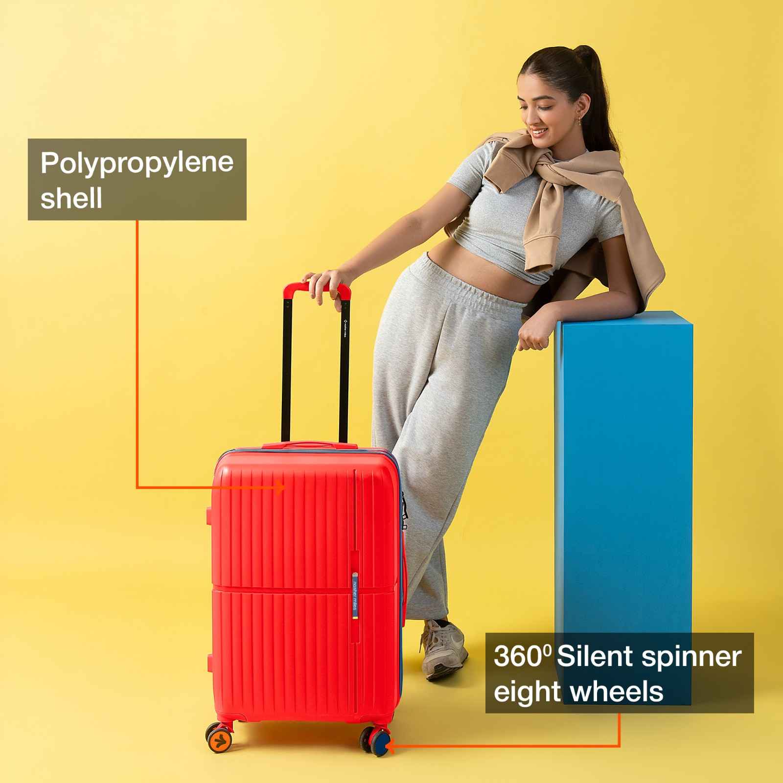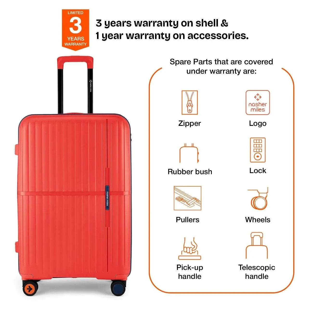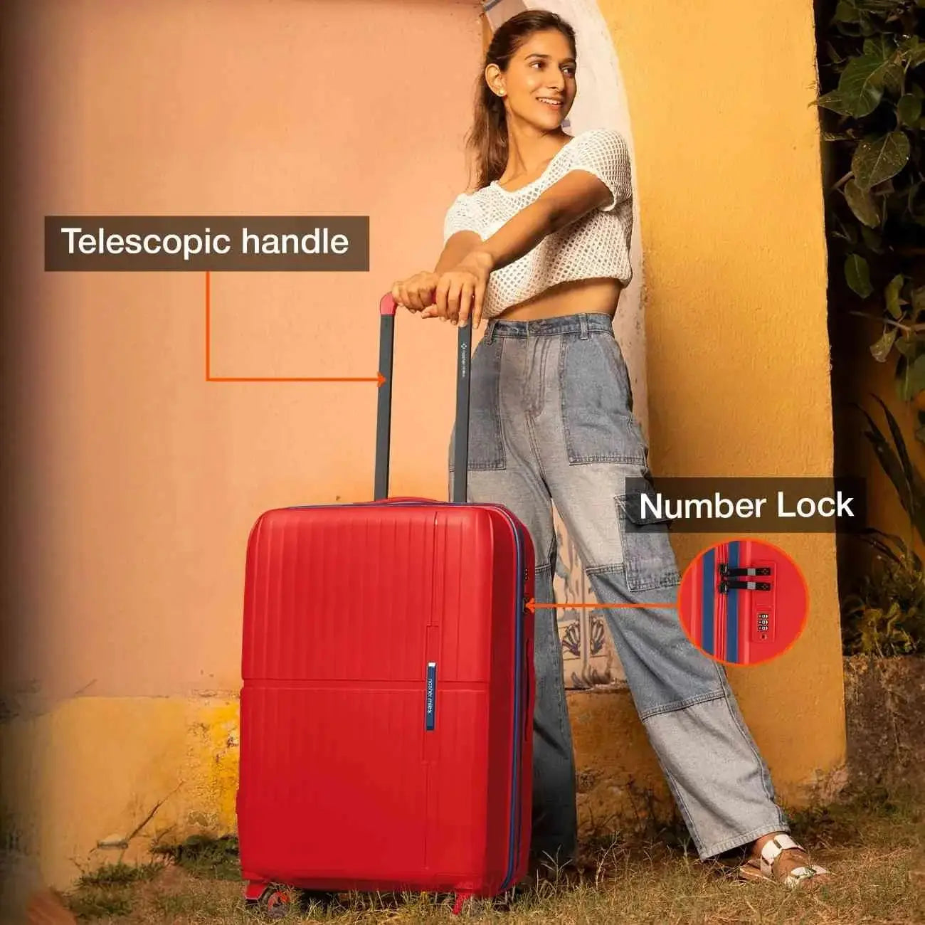 Durable Construction: Outer material of the luggage trolley is designed with high-quality unbreakable polypropylene material for exceptional durability and a lightweight feel. This suitcase offers protection to keep your belongings safe. The telescopic handle is made of aluminum for easy handling.
