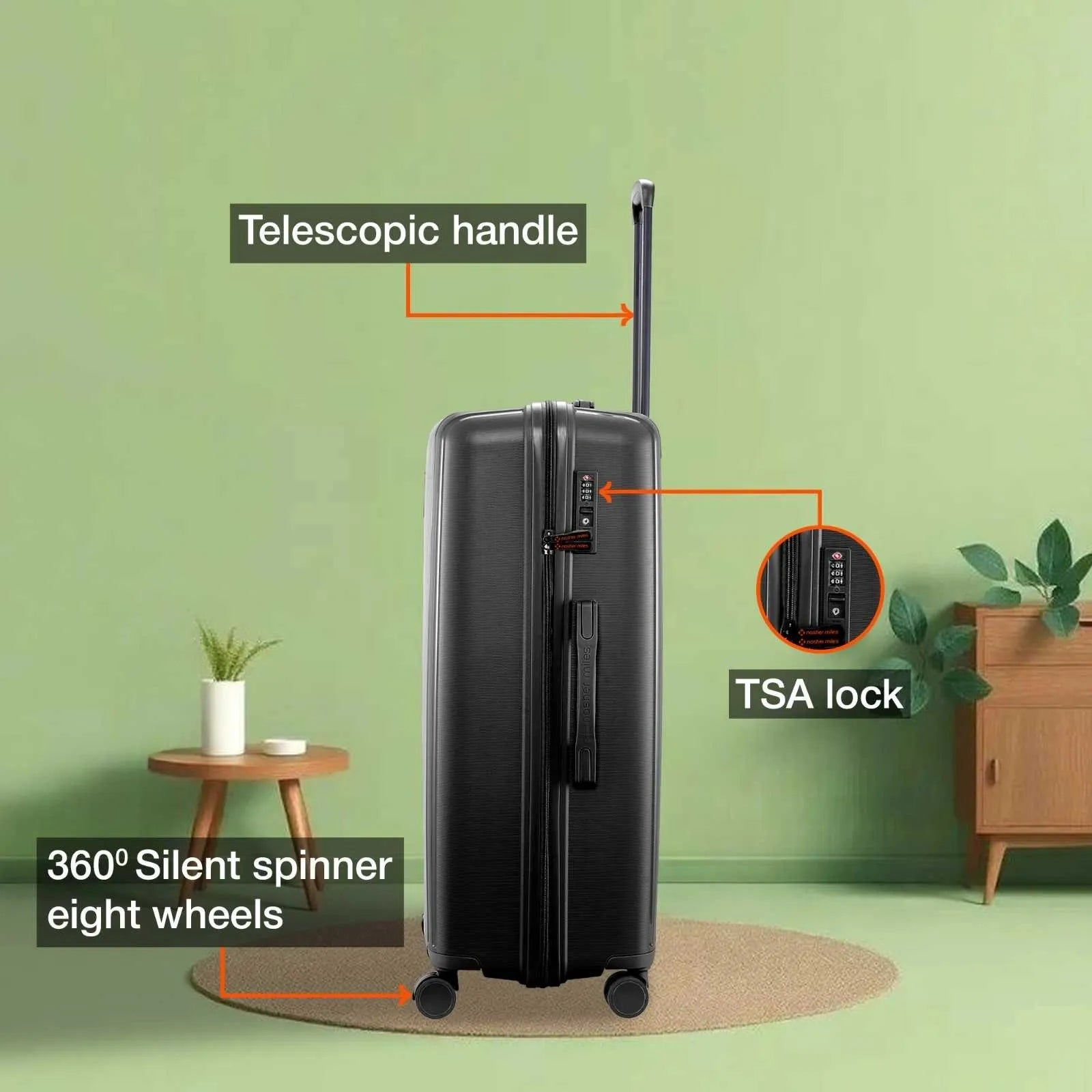 TSA lock: Side-mounted TSA lock deters theft, ensuring only you or TSA agents can unlock it.