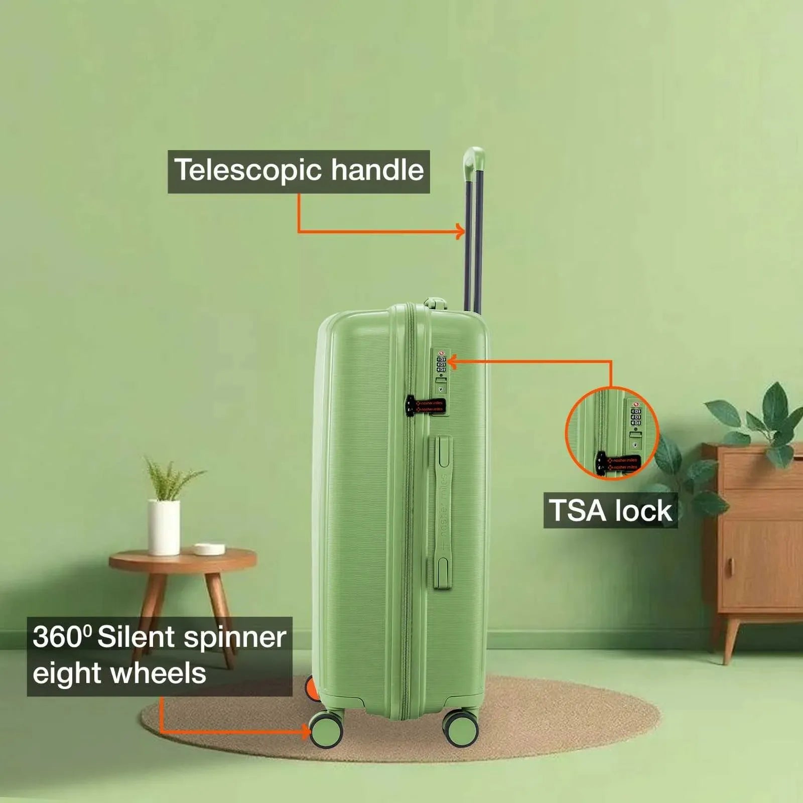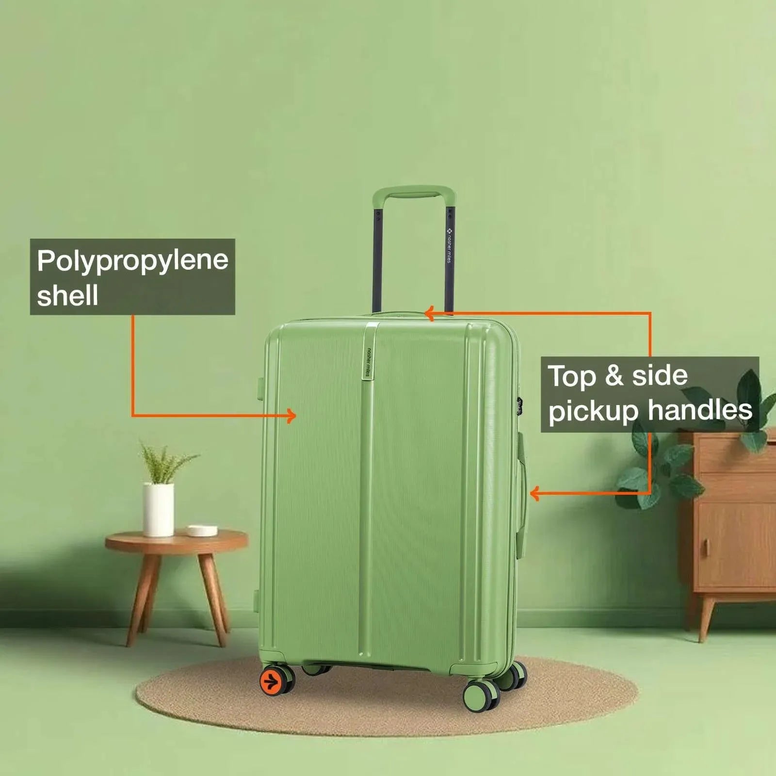 Lightweight hard side 2-piece luggage set: Small (55 cm) for cabin luggage and Medium (65 cm) for check-in luggage. Crafted from unbreakable polypropylene for top-notch protection during your travels.