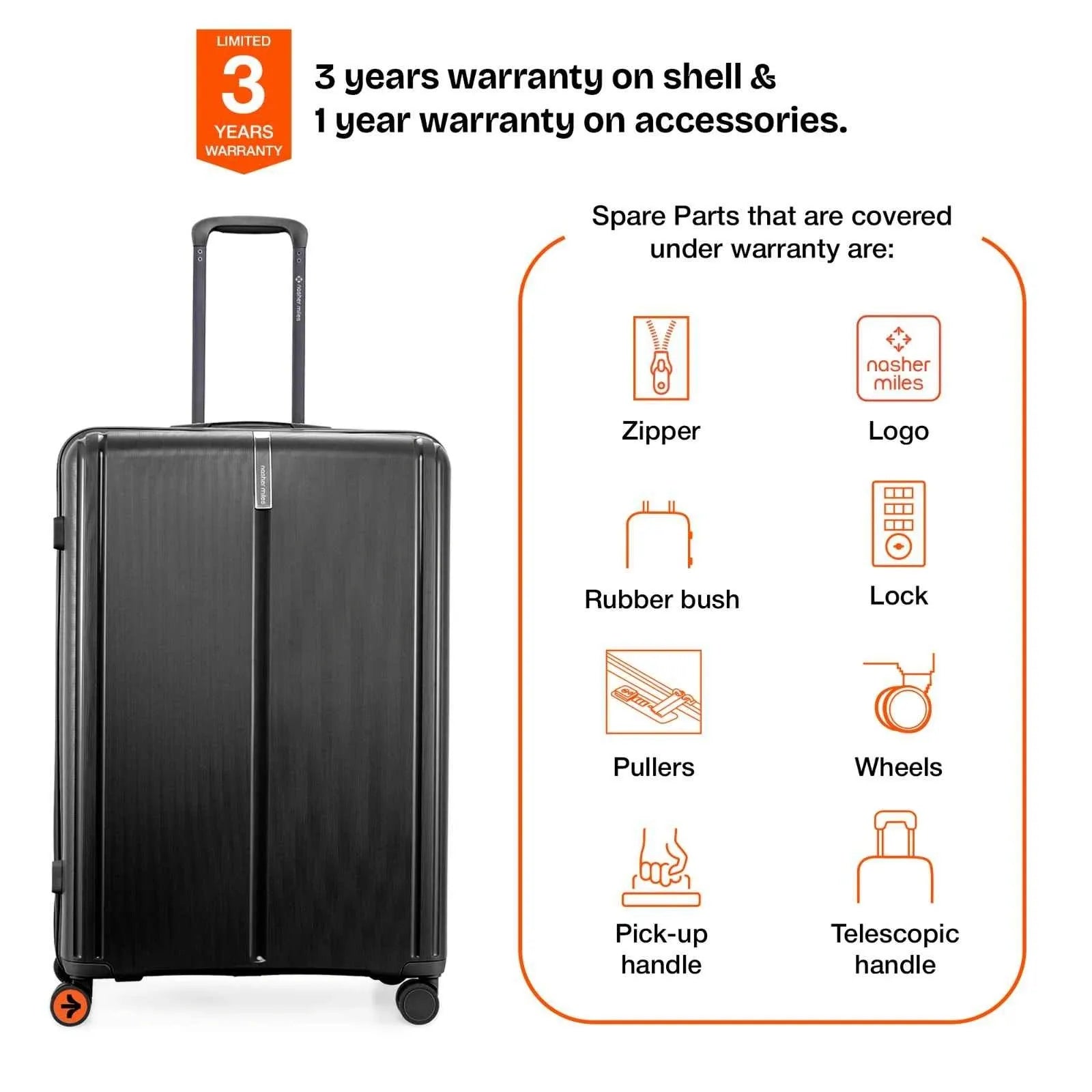 3 Years warranty on shell & 1 year warranty on accessories. Wear & Tear for product under use and scratches are not covered.