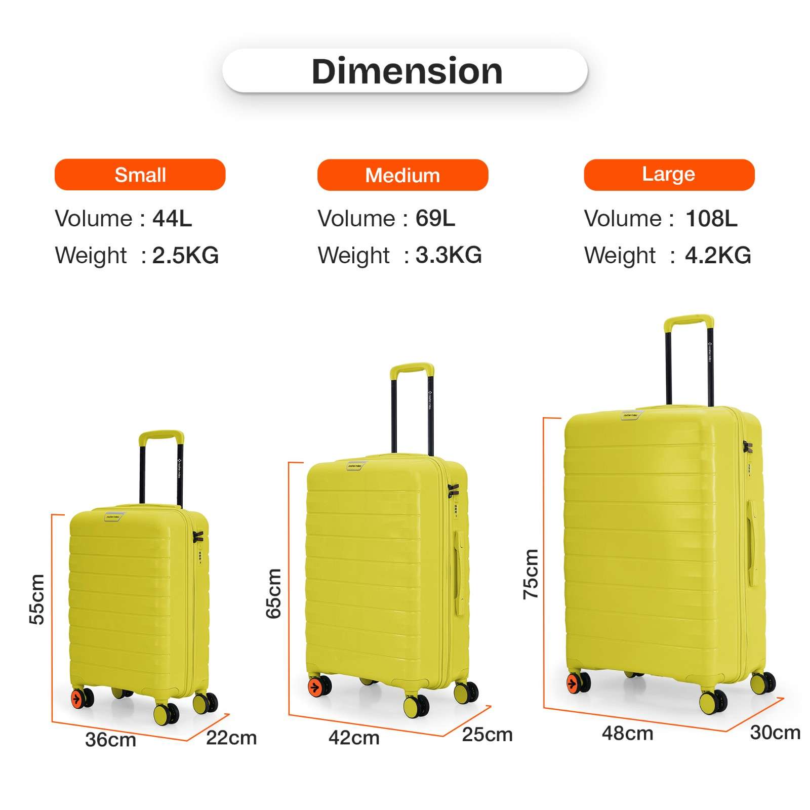 Carry-On Small (S): With a compact 20-inch size, this carry-on suitcase is ideal for travel duration ranging from 1 to 5 days, making it the perfect companion for weekend getaways, business trips, or quick vacations. Suitcase can hold weight up to 8 Kg.