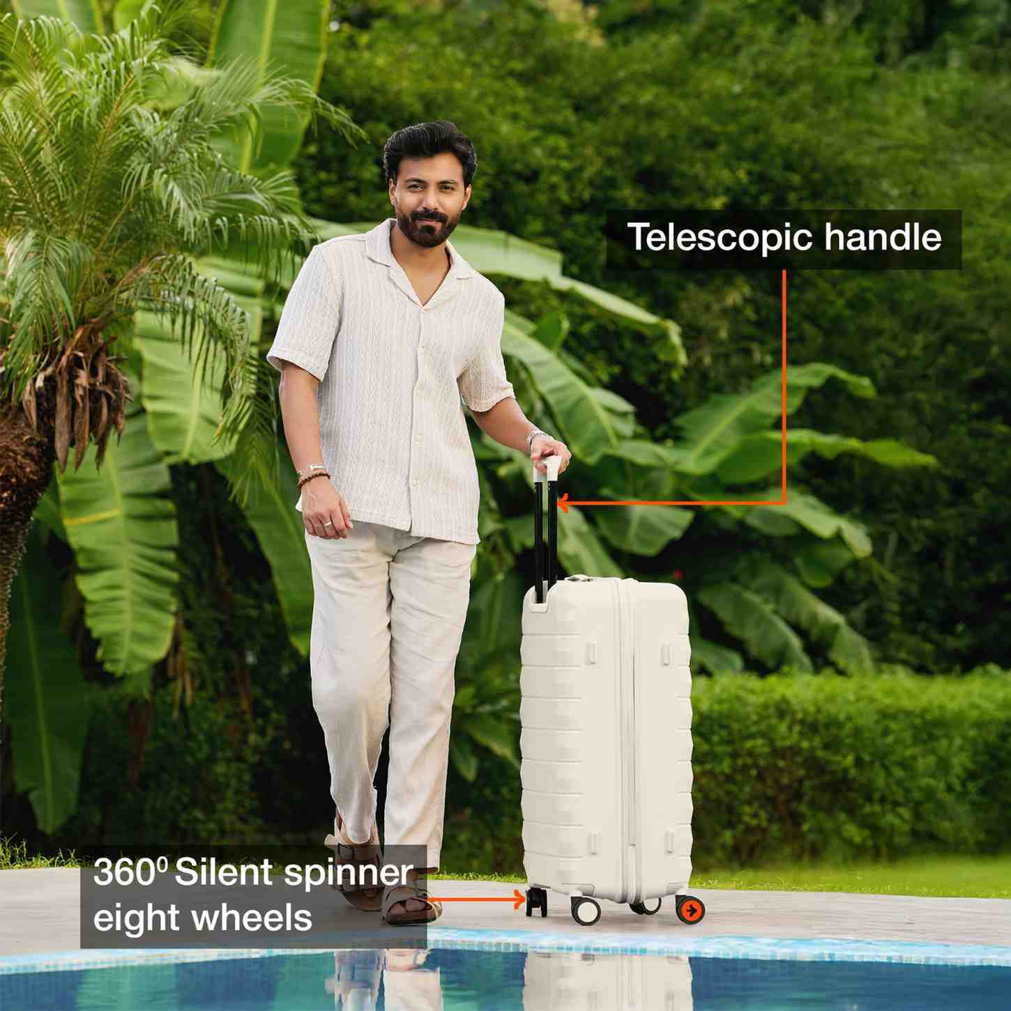 Durable Construction: Outer material of the luggage trolley is designed with high-quality unbreakable polypropylene material for exceptional durability and a lightweight feel. This suitcase offers protection to keep your belongings safe. The telescopic handle is made of aluminum for easy handling.