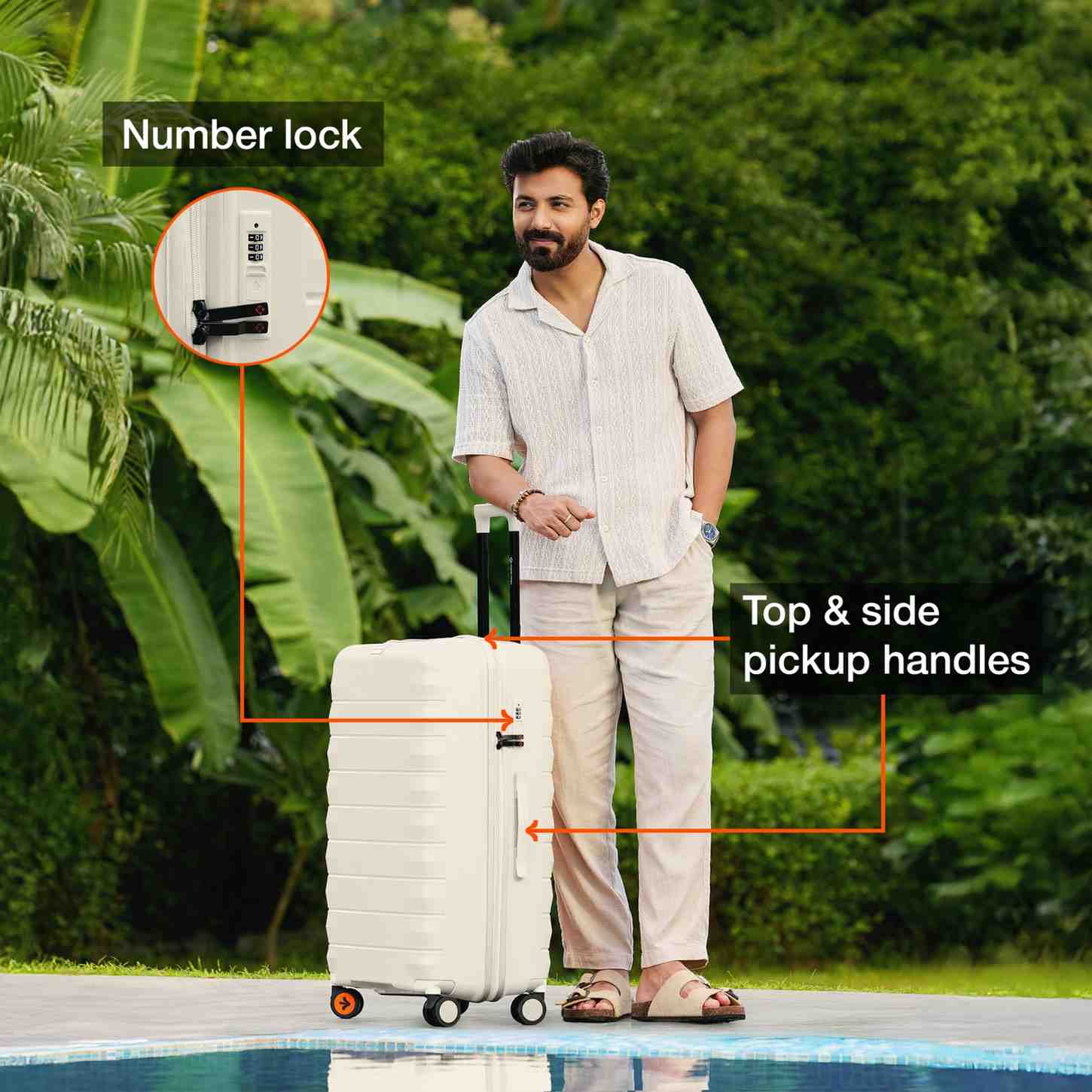 Spacious Interiors: Compact yet spacious, our trolley bag features dual-sided interior storage. One side comes with adjustable straps and the other one is a zippered section to keep your clothes, accessories and electronics neatly organized. Each bag has a separate number lock (reset code 0-0-0)