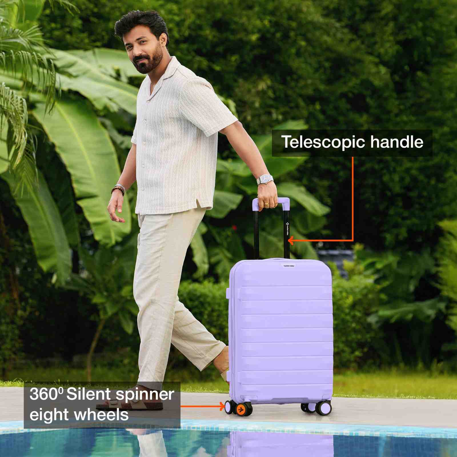 Durable Construction: Outer material of the luggage trolley is designed with high-quality unbreakable polypropylene material for exceptional durability and a lightweight feel. This suitcase offers protection to keep your belongings safe. The telescopic handle is made of aluminum for easy handling.