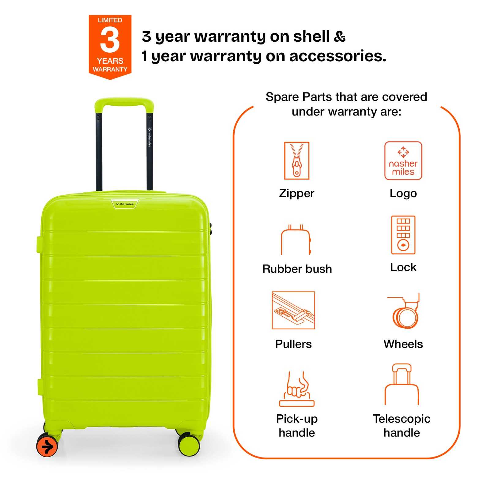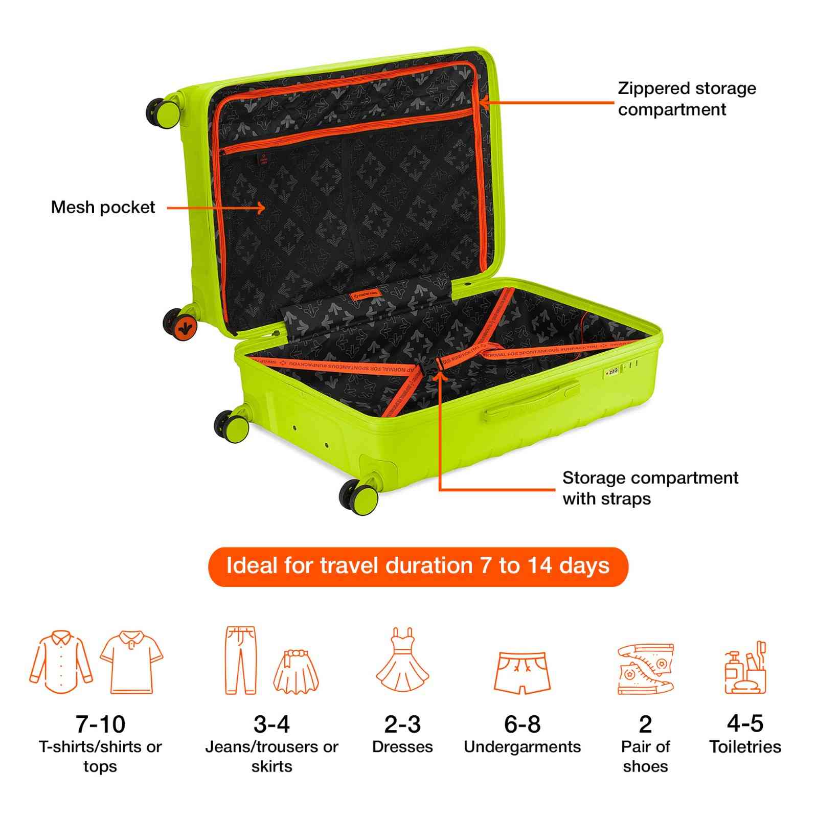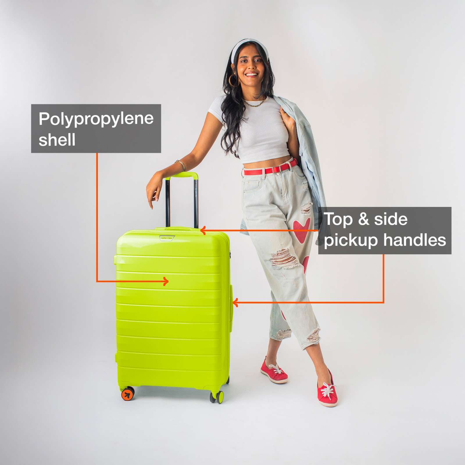 Durable Construction: Outer material of the luggage trolley is designed with high-quality unbreakable polypropylene material for exceptional durability and a lightweight feel. This suitcase offers protection to keep your belongings safe. The telescopic handle is made of aluminum for easy handling.