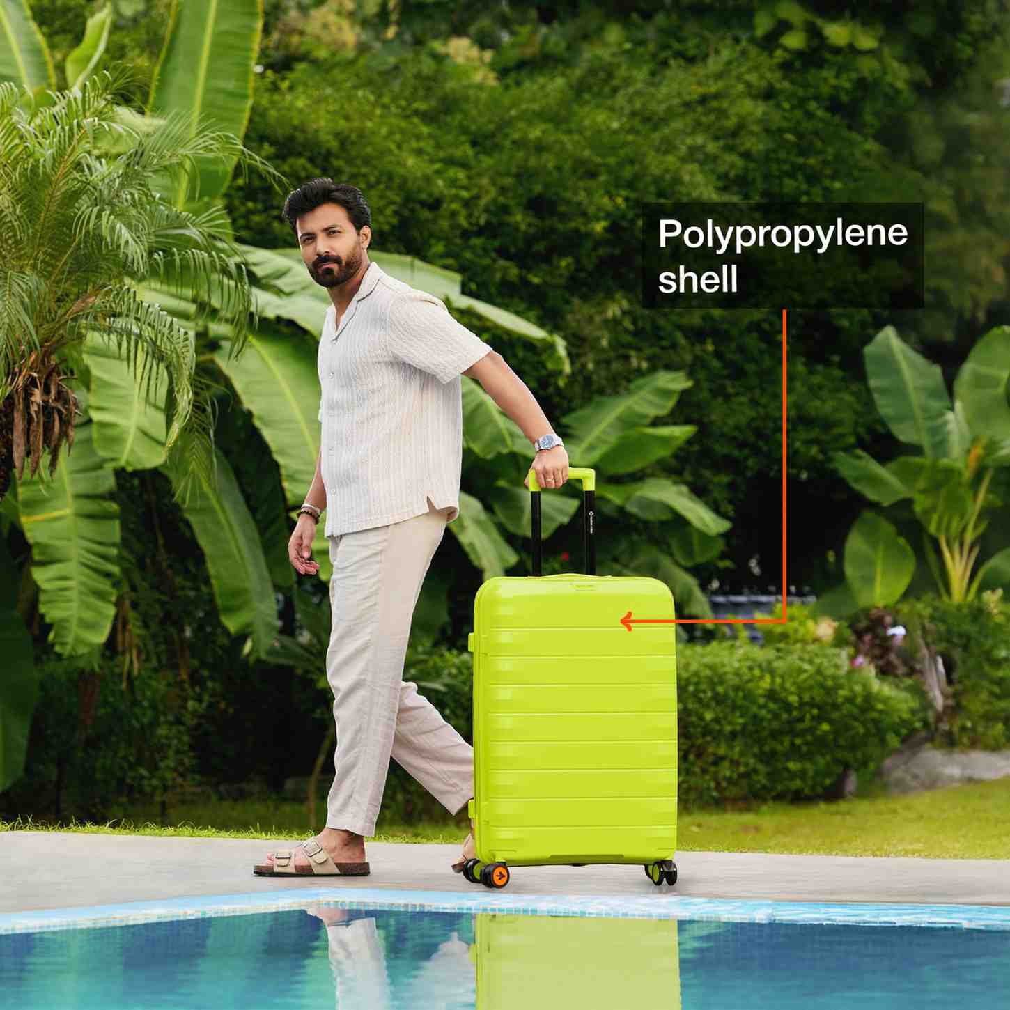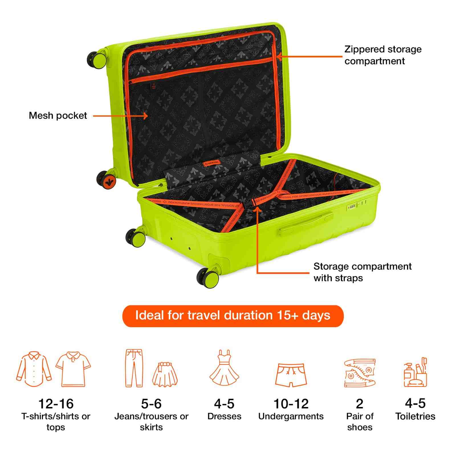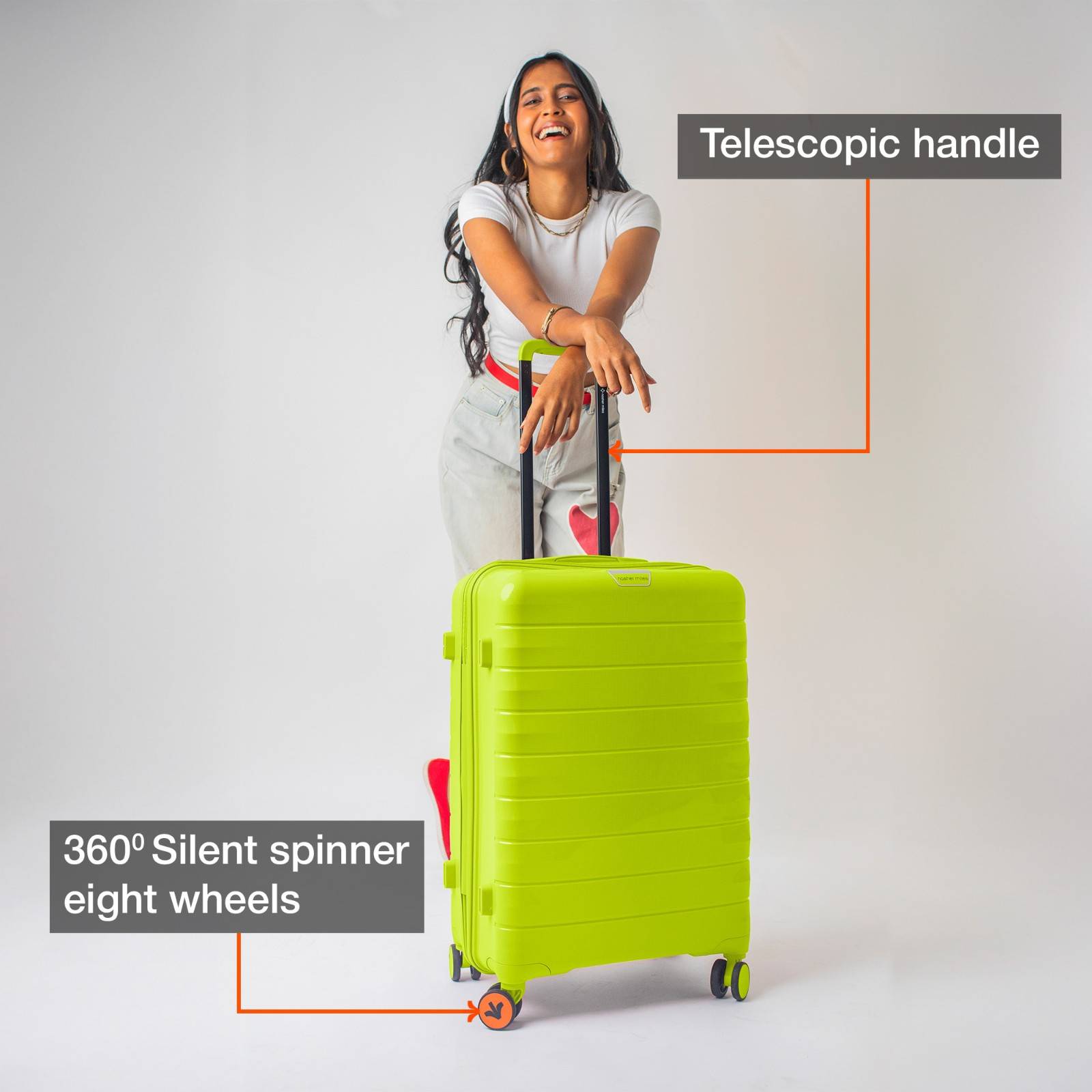 Durable Construction: Outer material of the luggage trolley is designed with high-quality unbreakable polypropylene material for exceptional durability and a lightweight feel. This suitcase offers protection to keep your belongings safe. The telescopic handle is made of aluminum for easy handling.