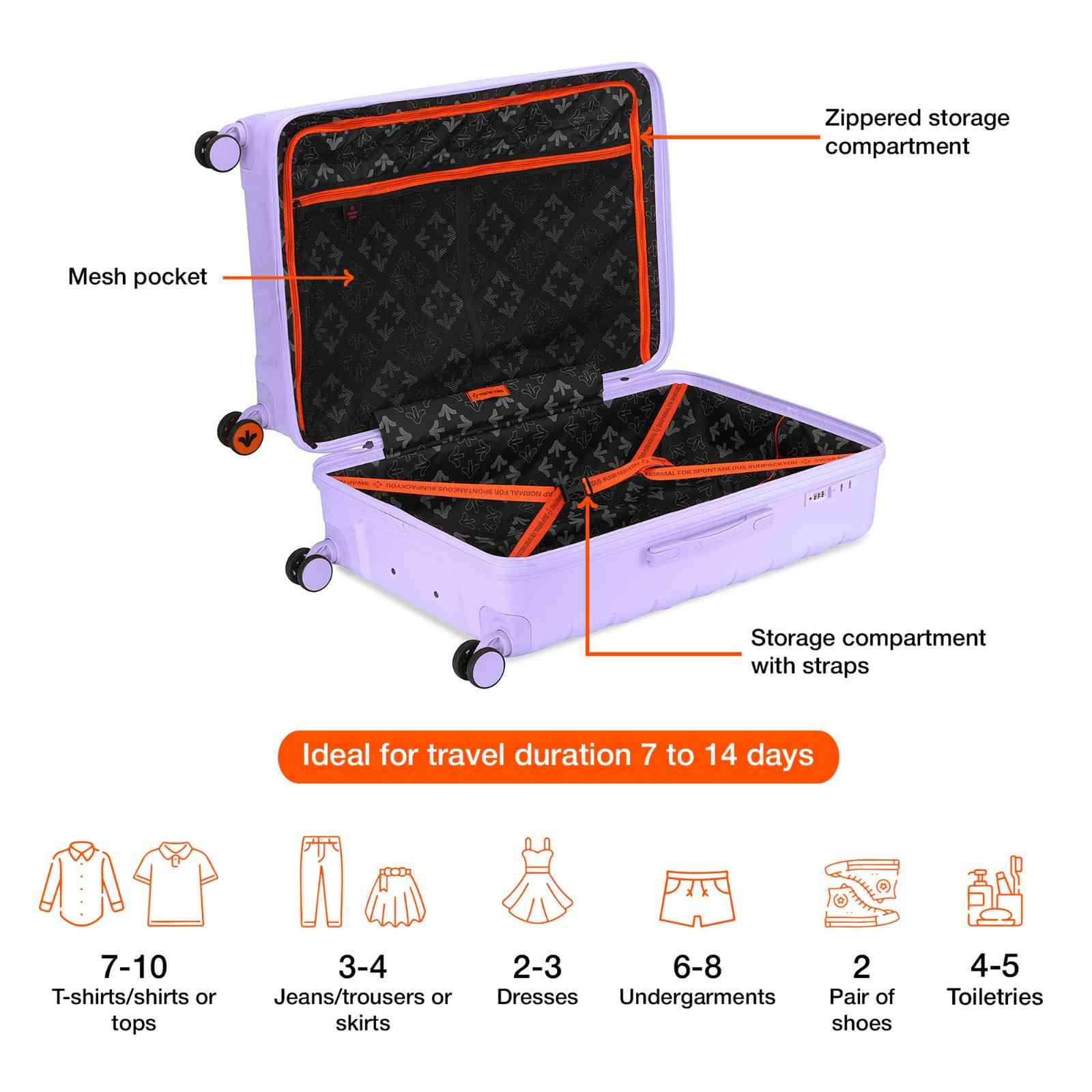 Luggage Set: Hard-sided 2-piece luggage set, includes the following sizes: Small: 20-inch & Medium: 24-inch. These suitcases are ideal for travel duration ranging from 5-7 days, making it the perfect companion for weekend getaways, business trips, or vacations. Suitcases can hold weight up to 8-15 Kgs.