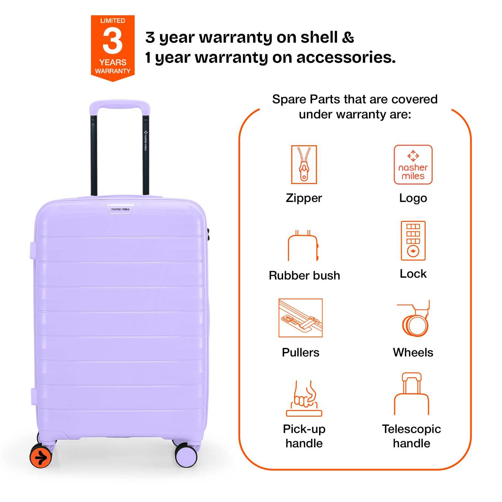 Durable Construction: Outer material of the luggage trolley is designed with high-quality unbreakable polypropylene material for exceptional durability and a lightweight feel. This suitcase offers protection to keep your belongings safe. The telescopic handle is made of aluminum for easy handling.